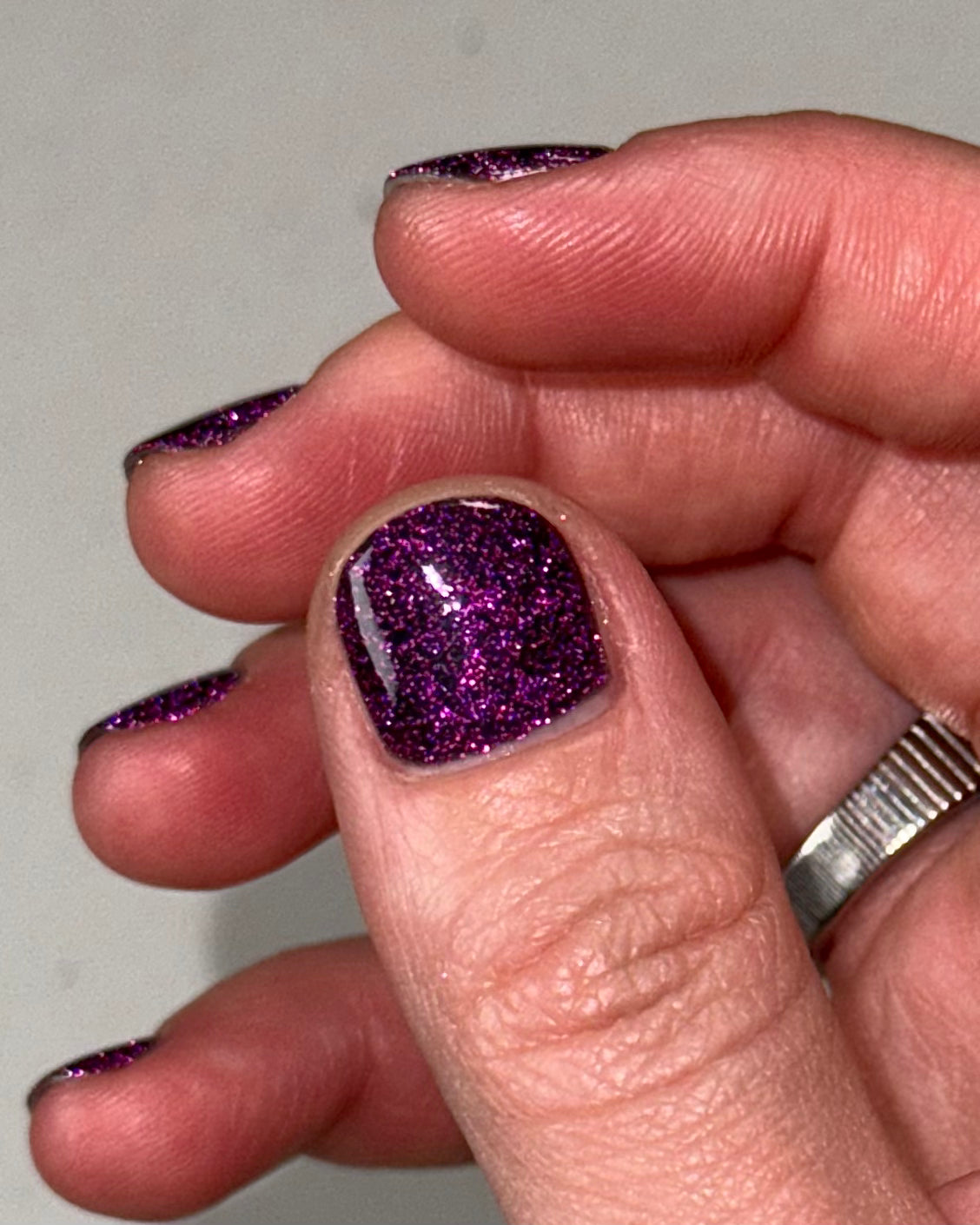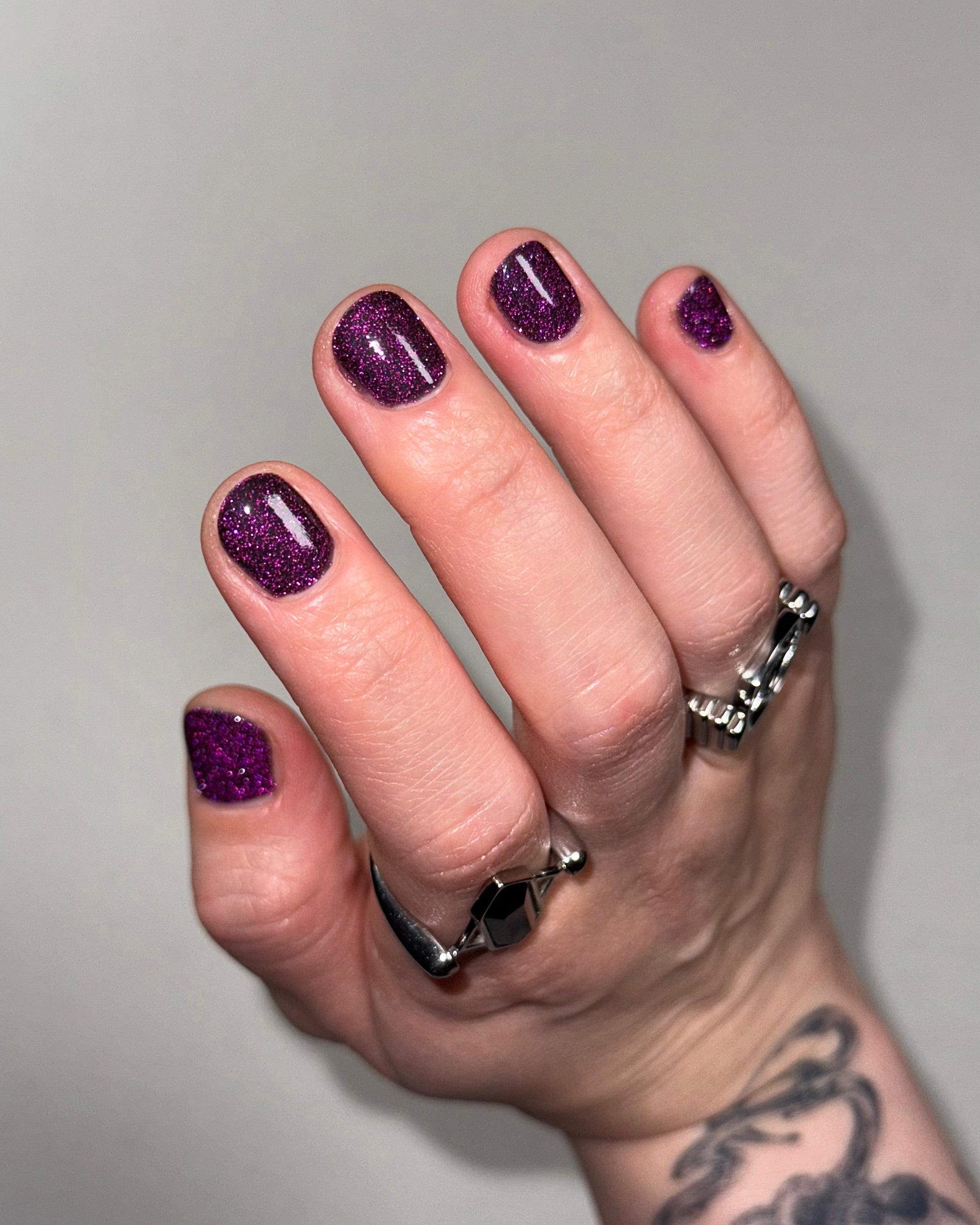 All of my polishes are mixed by hand in small batches. I do my best, but there may be some slight variation between batches, as well as a small chance of pigment specks. If you have any issues with your polish please contact me.