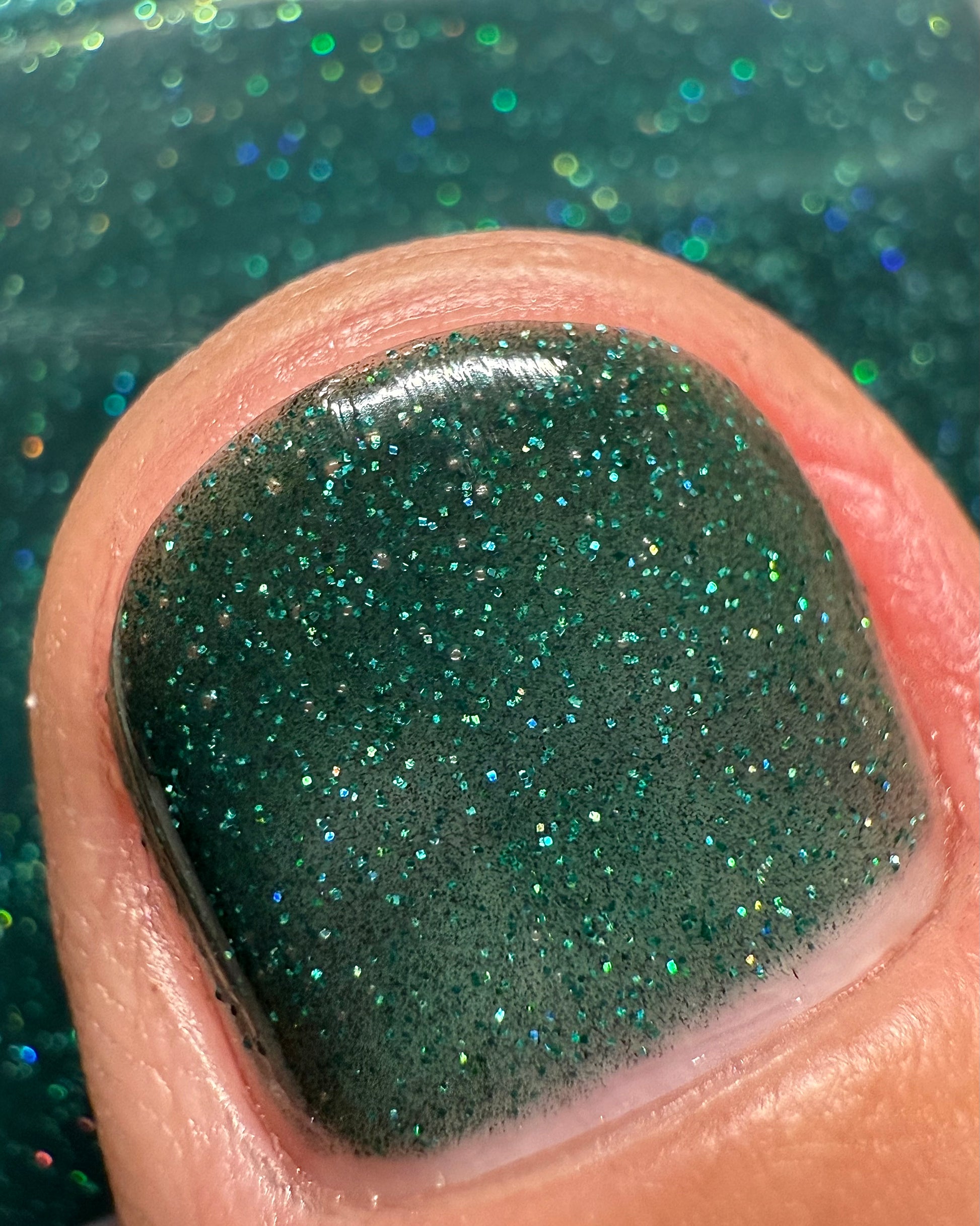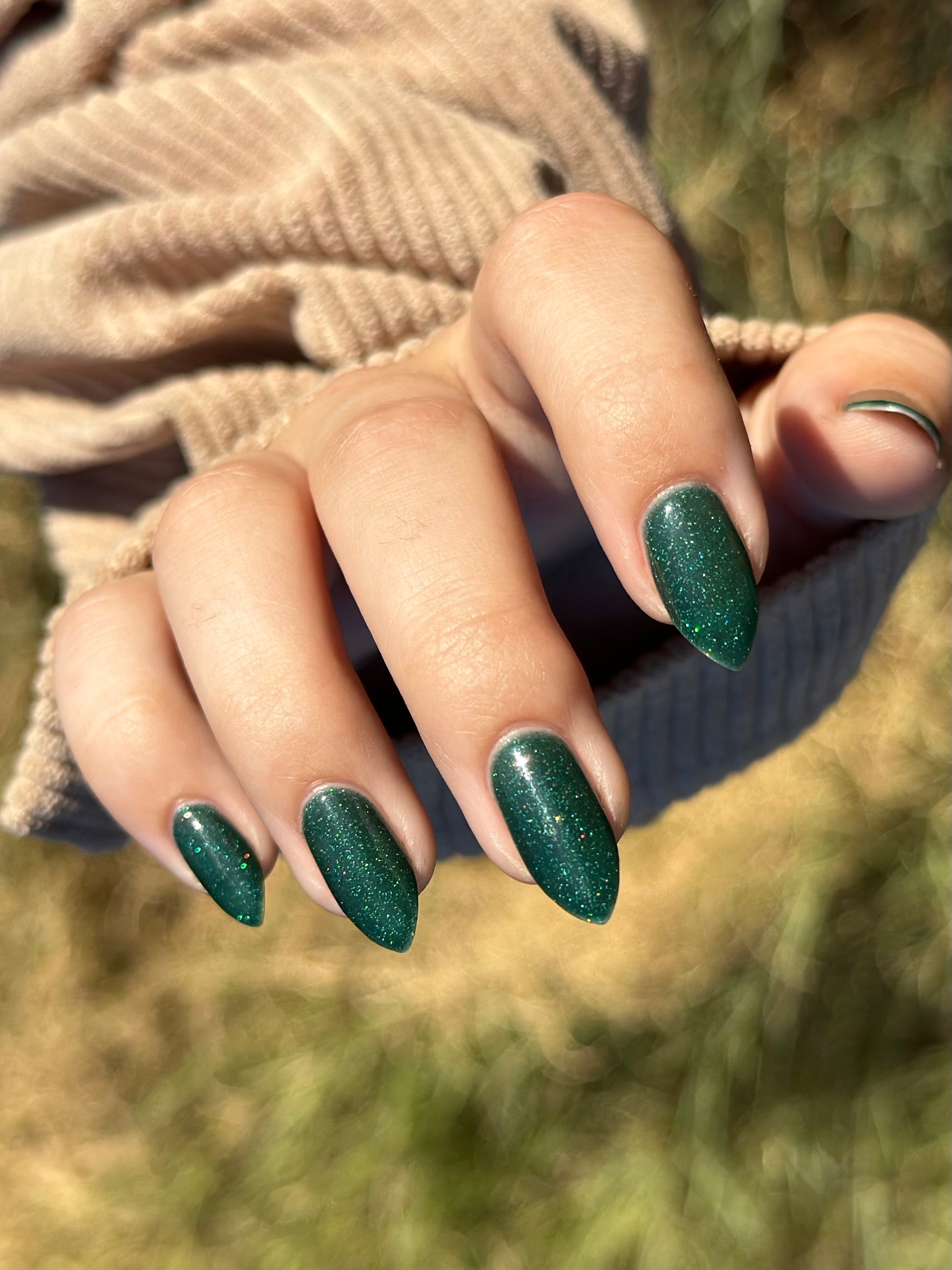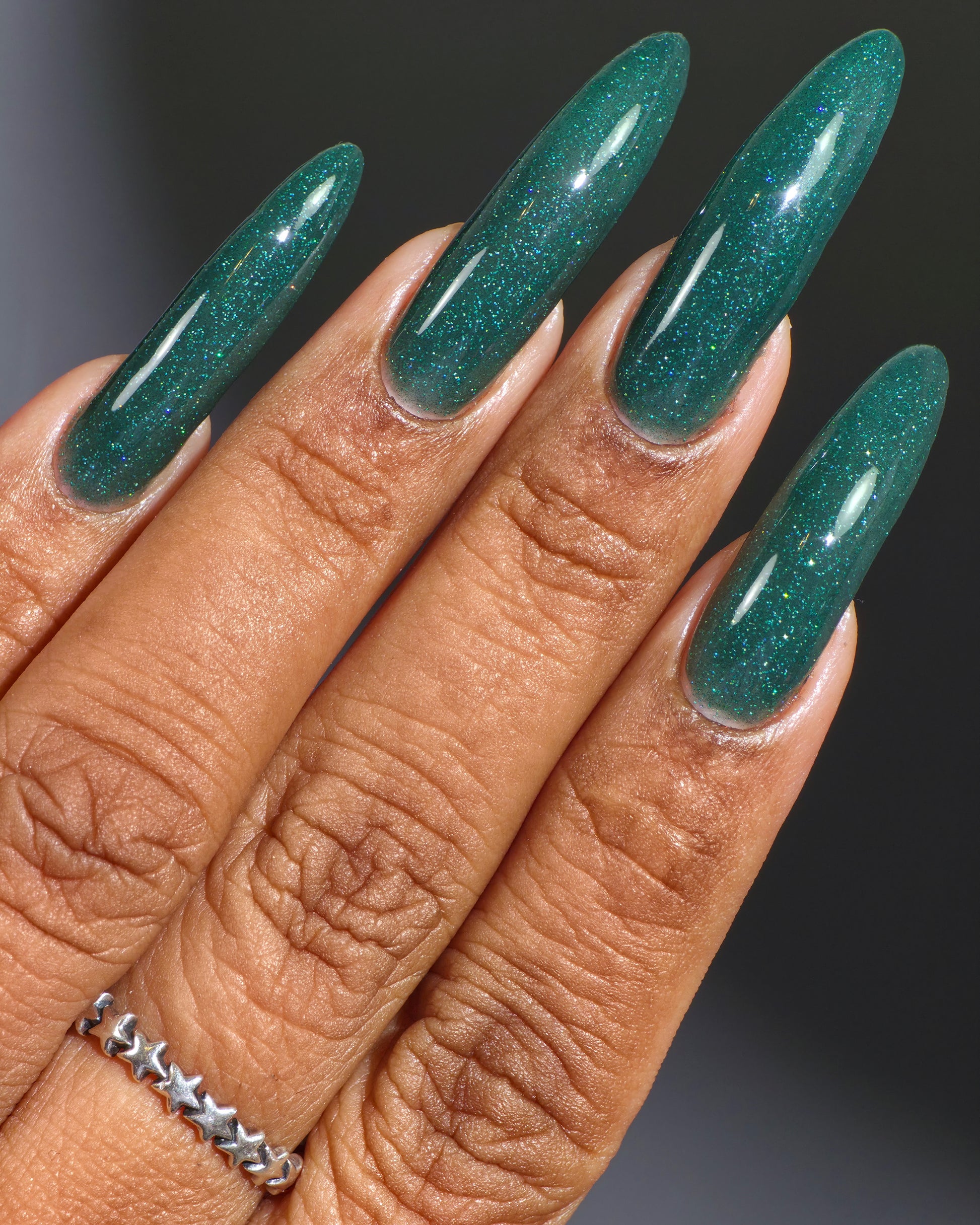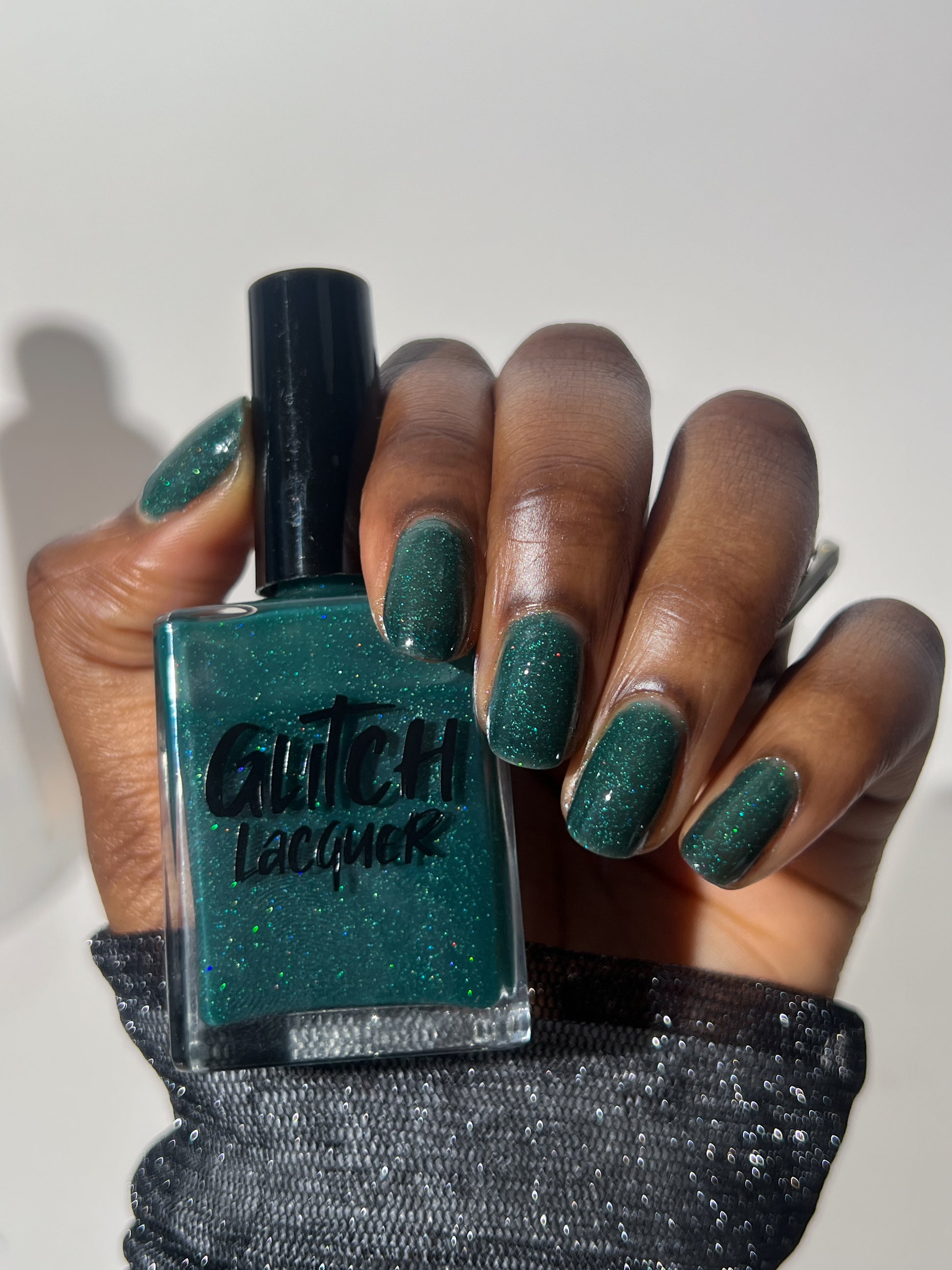 It’s hoa hoa hoaaa season. This polish is a dark teal crelly base packed with micro-fine teal glitter. Perfect for fall vibes that sparkle in the sun.