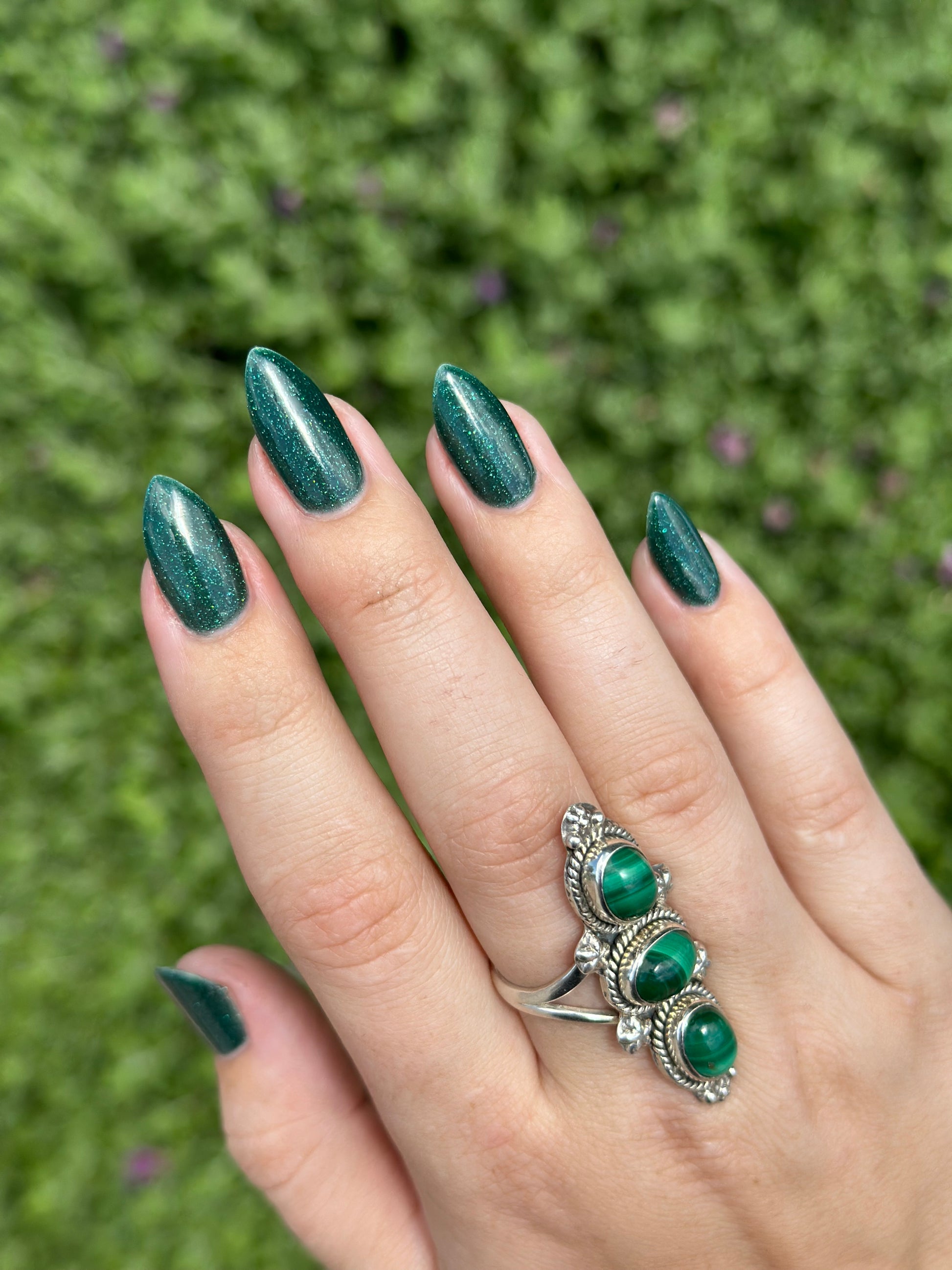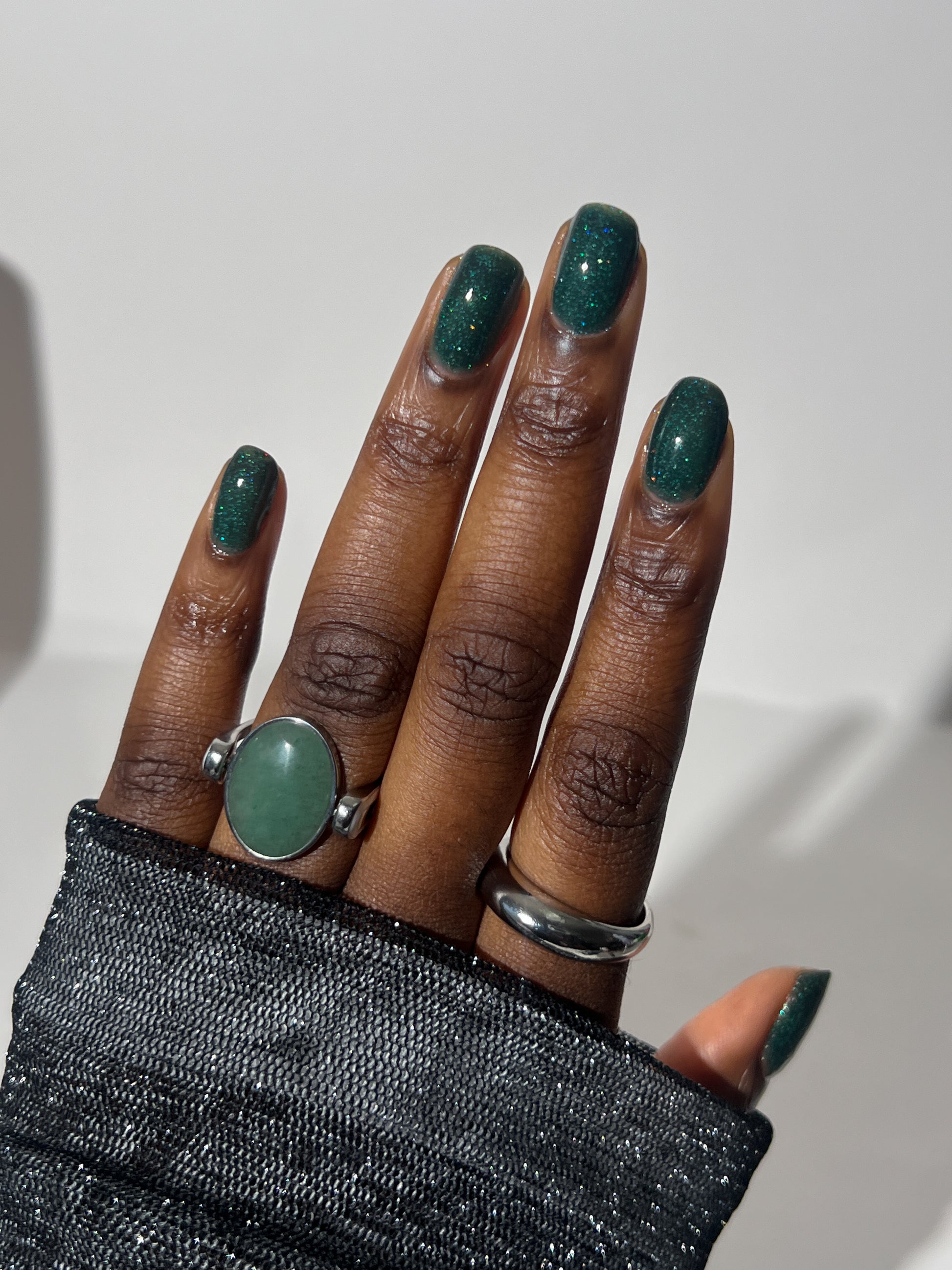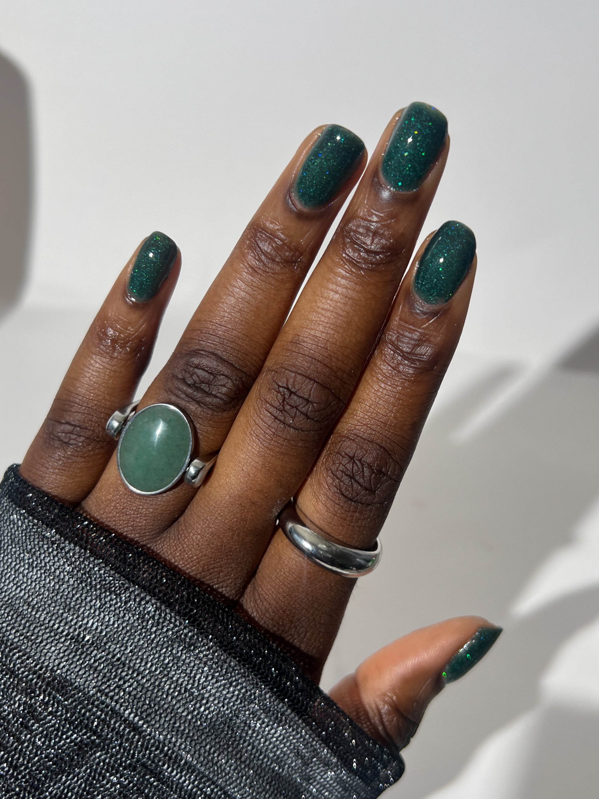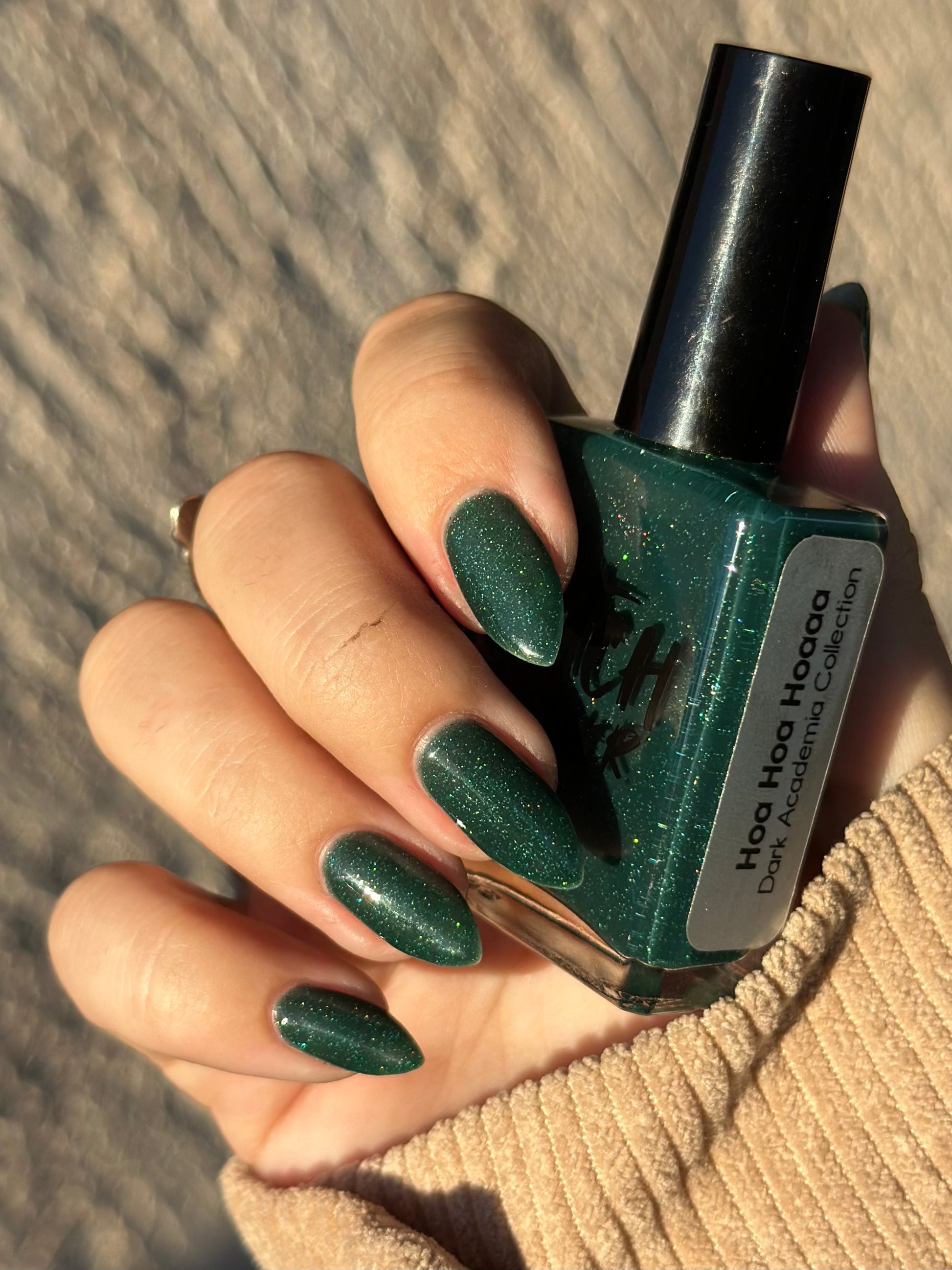 It’s hoa hoa hoaaa season. This polish is a dark teal crelly base packed with micro-fine teal glitter. Perfect for fall vibes that sparkle in the sun.