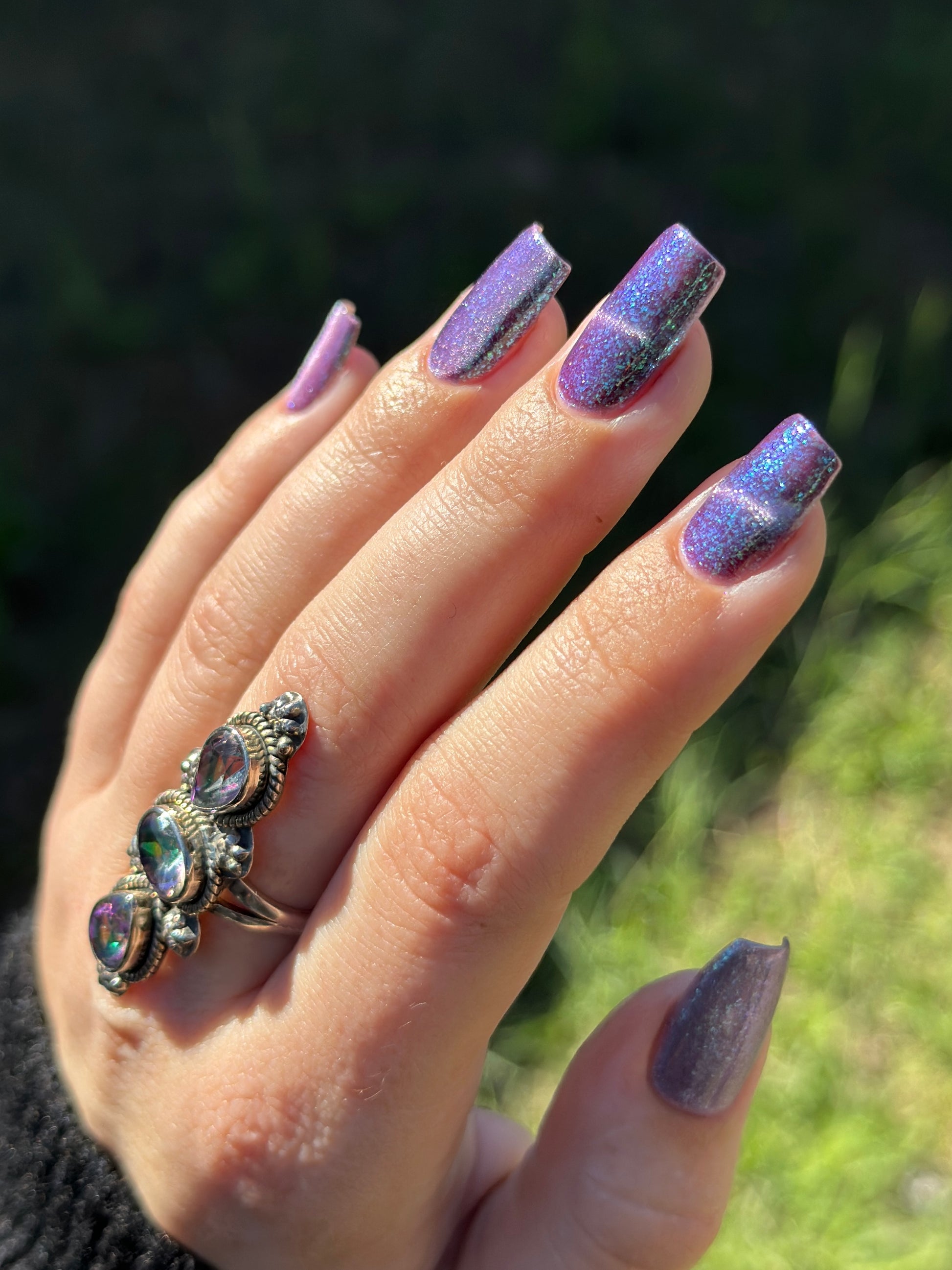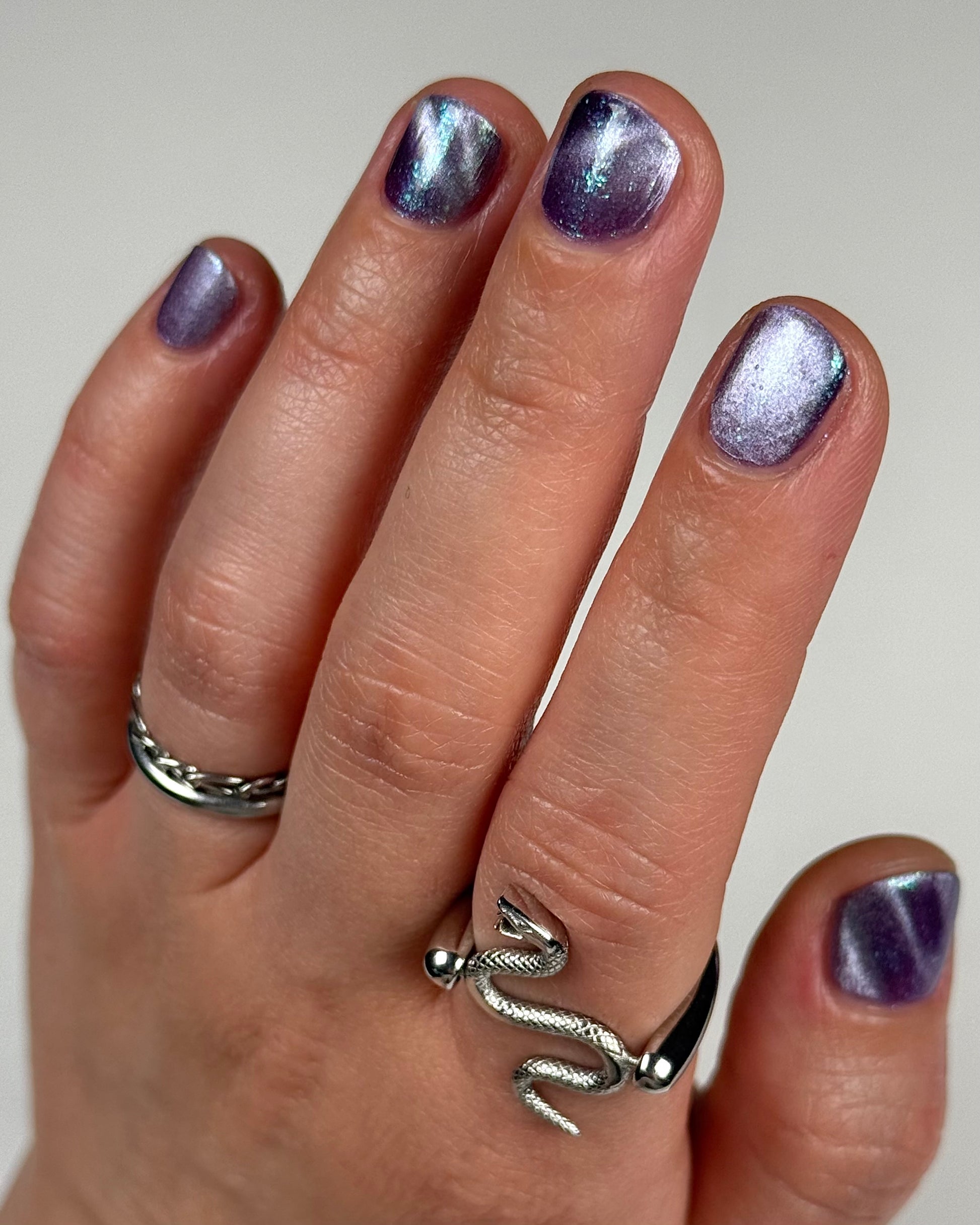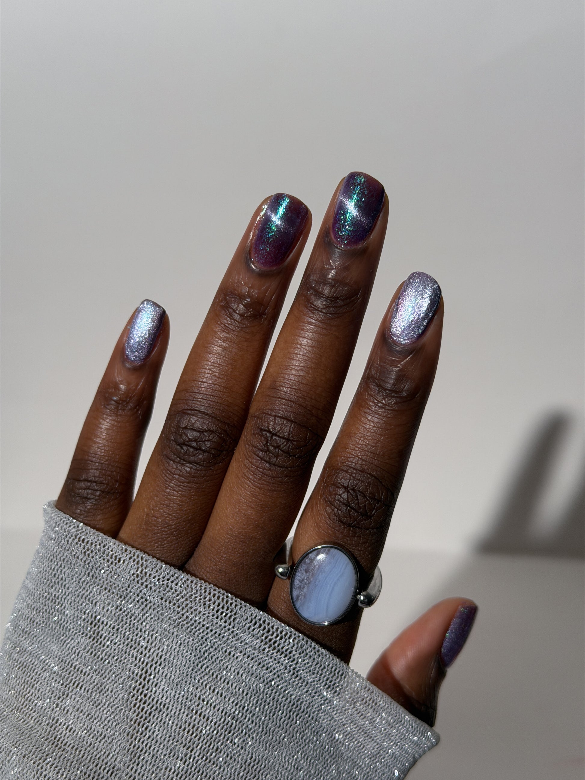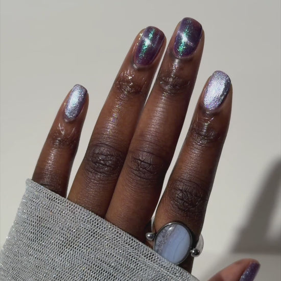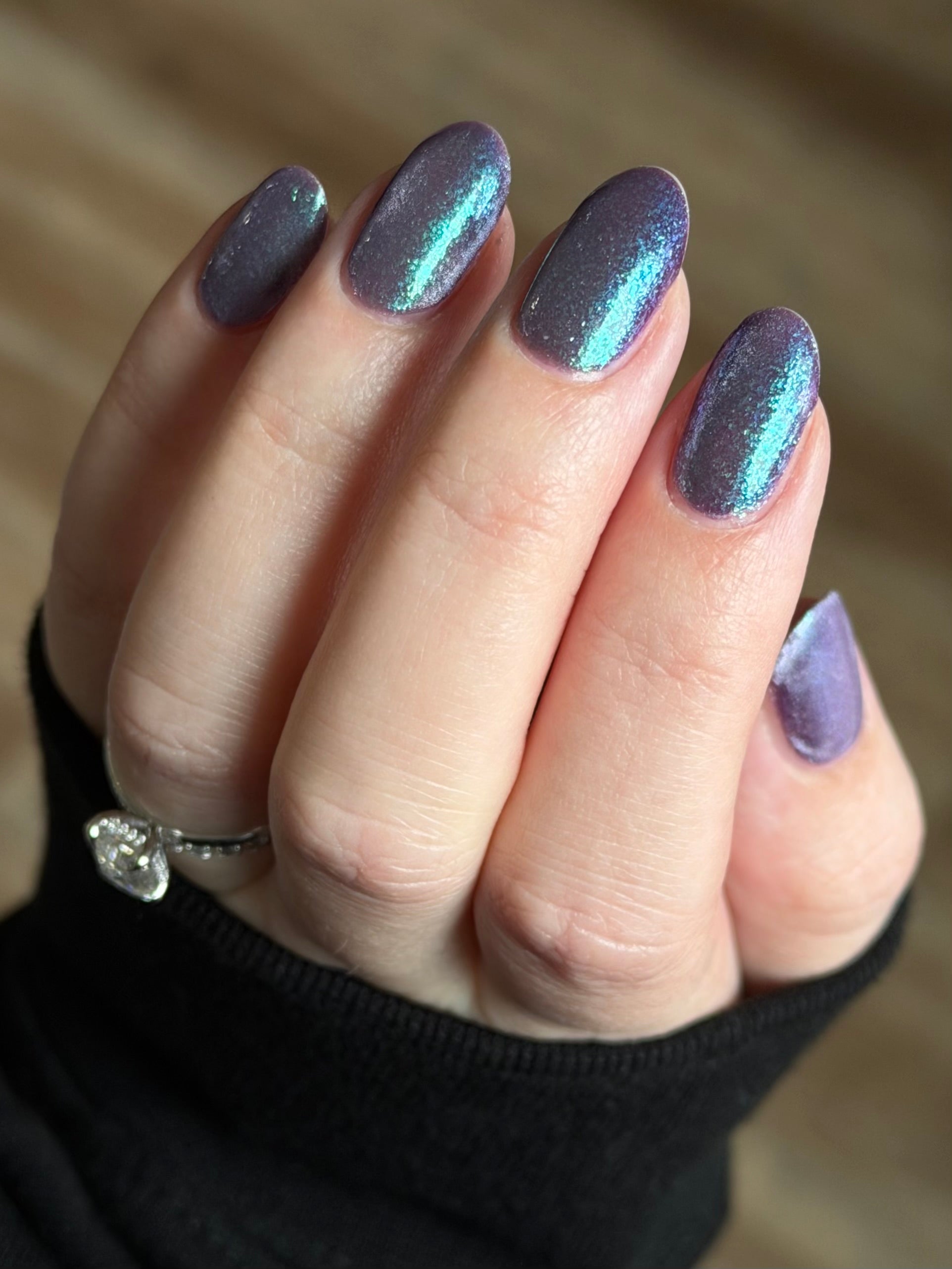 I’m Still Alive has a purple base, micro flakes that shift between teal, blue, and purple, and a prominent silver magnetic pigment.
