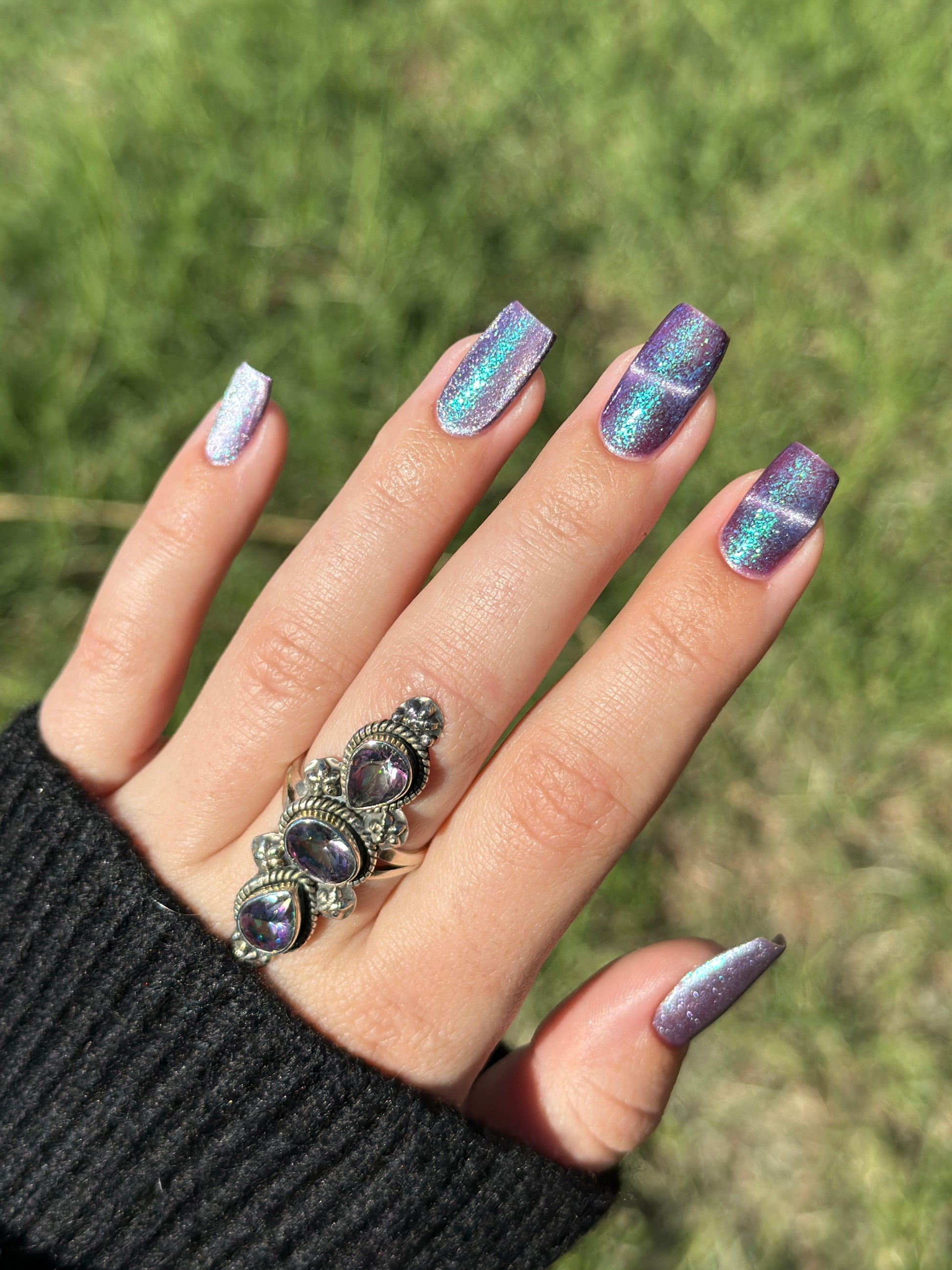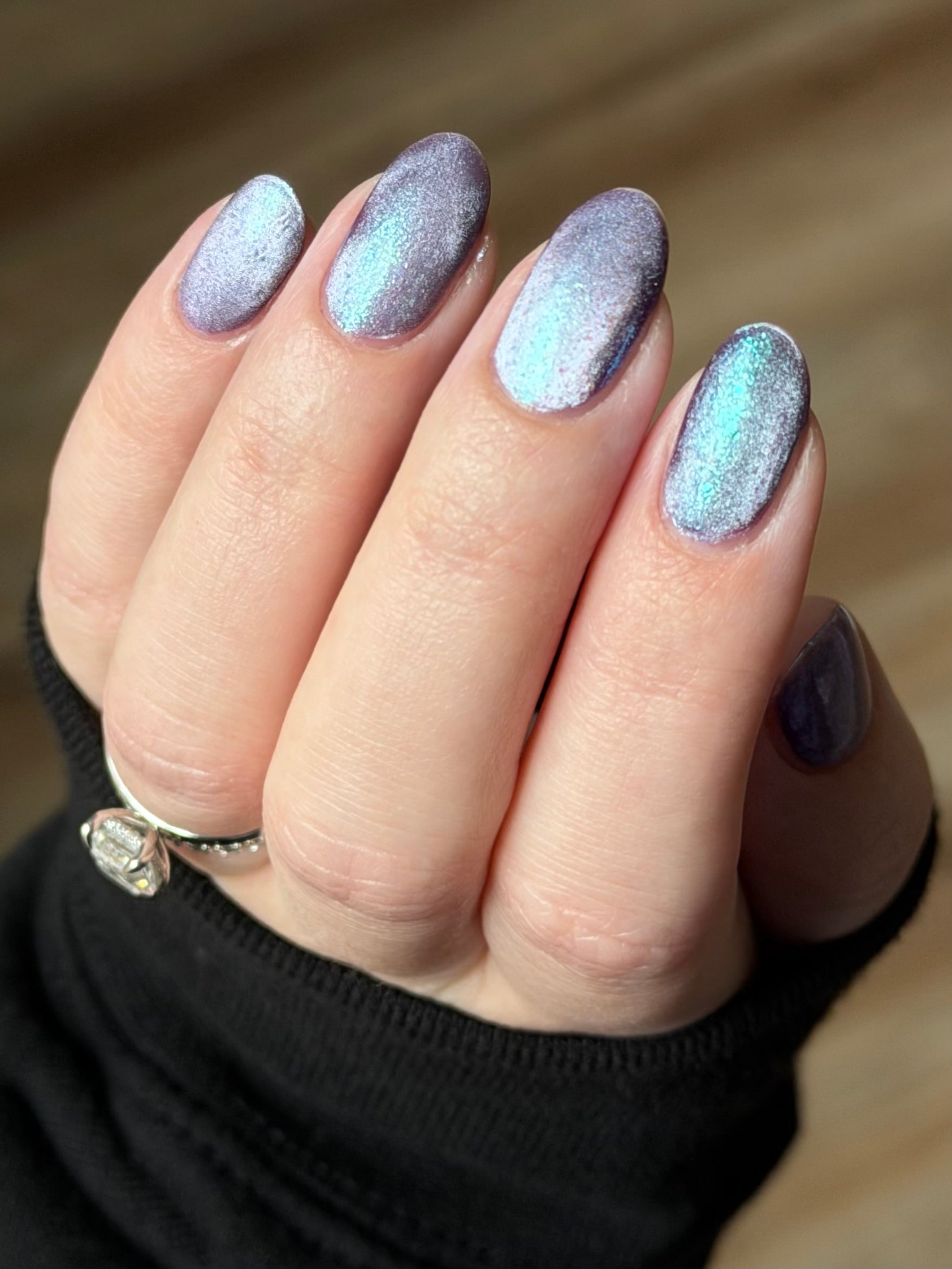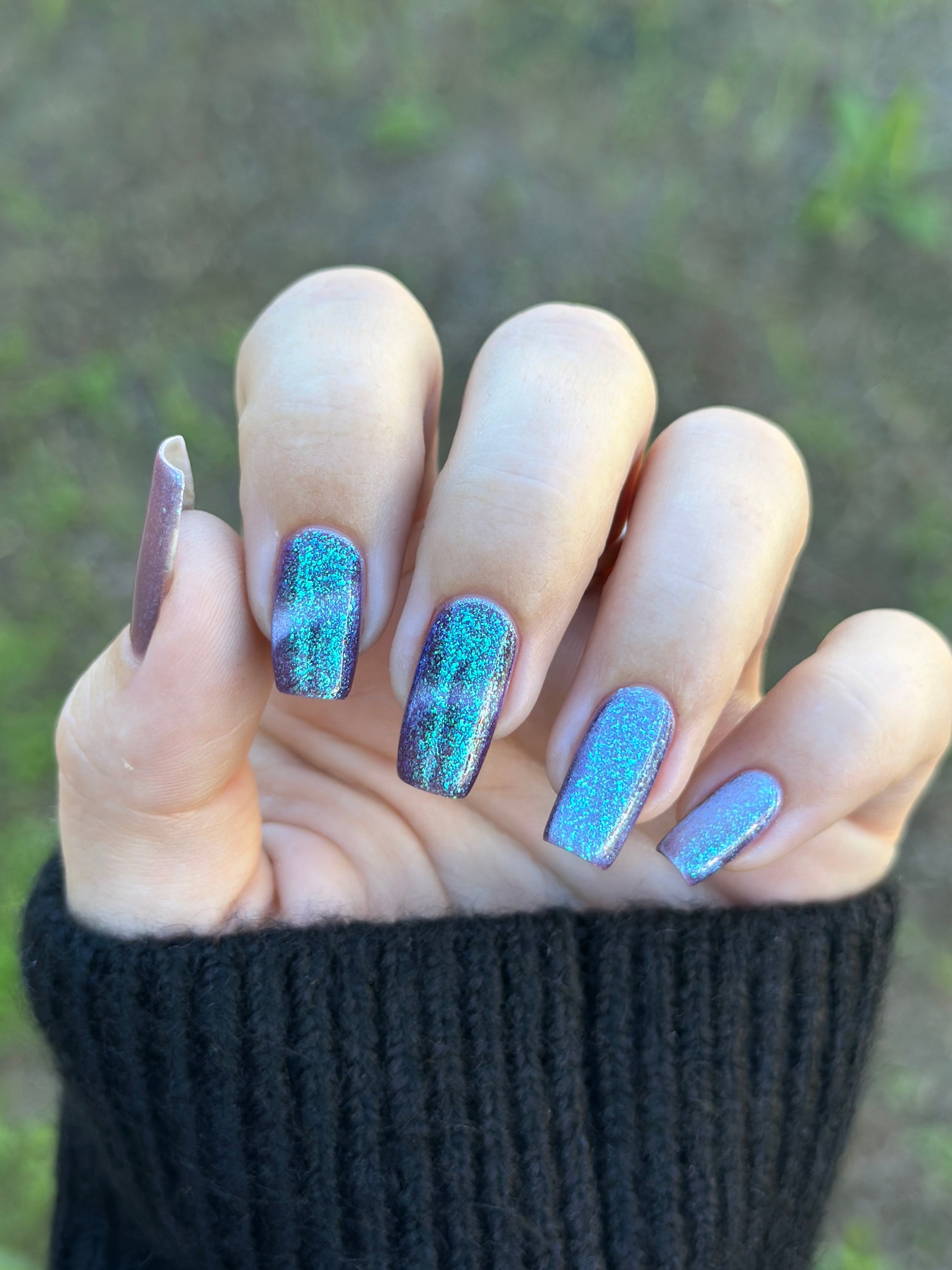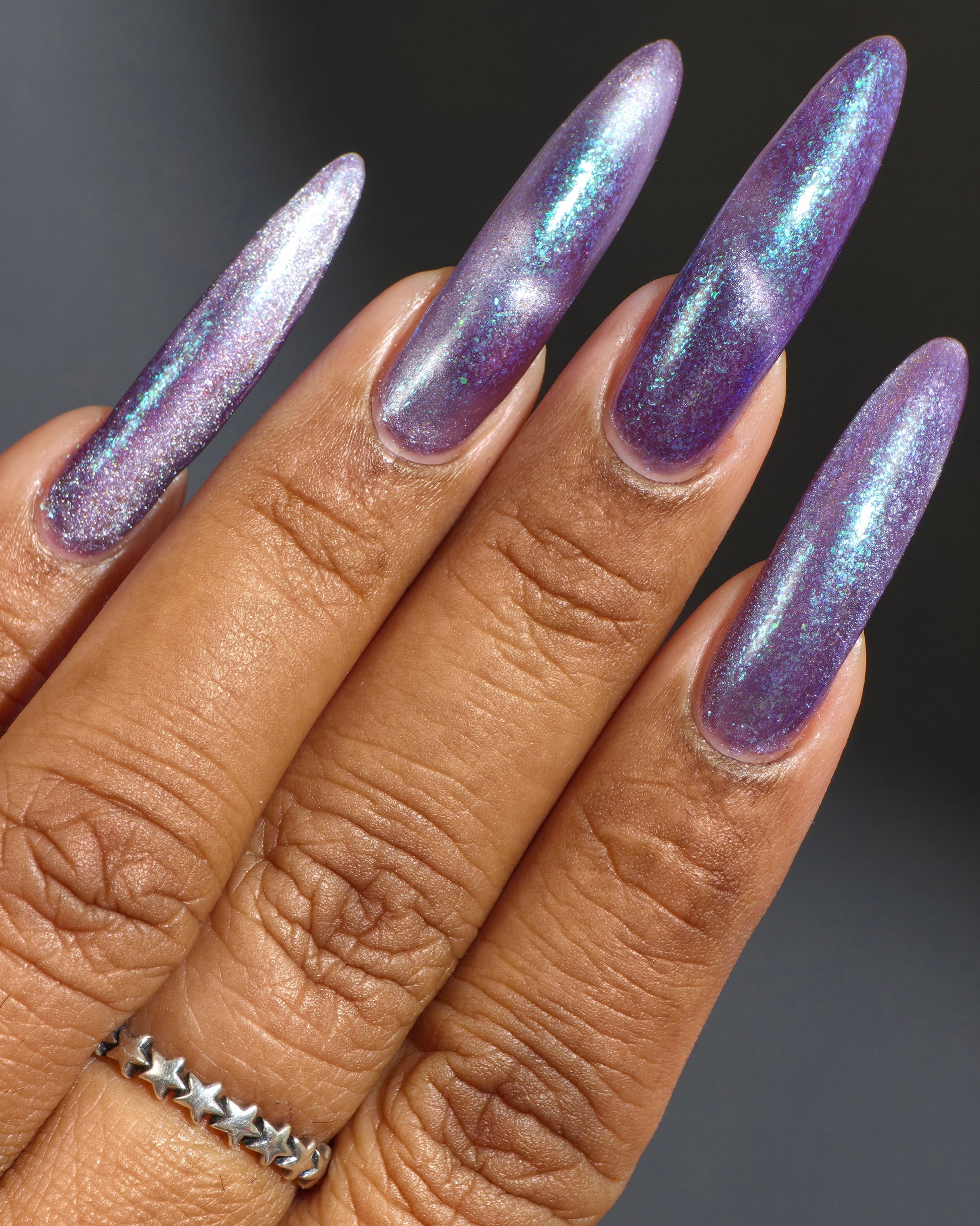I’m Still Alive has a purple base, micro flakes that shift between teal, blue, and purple, and a prominent silver magnetic pigment.