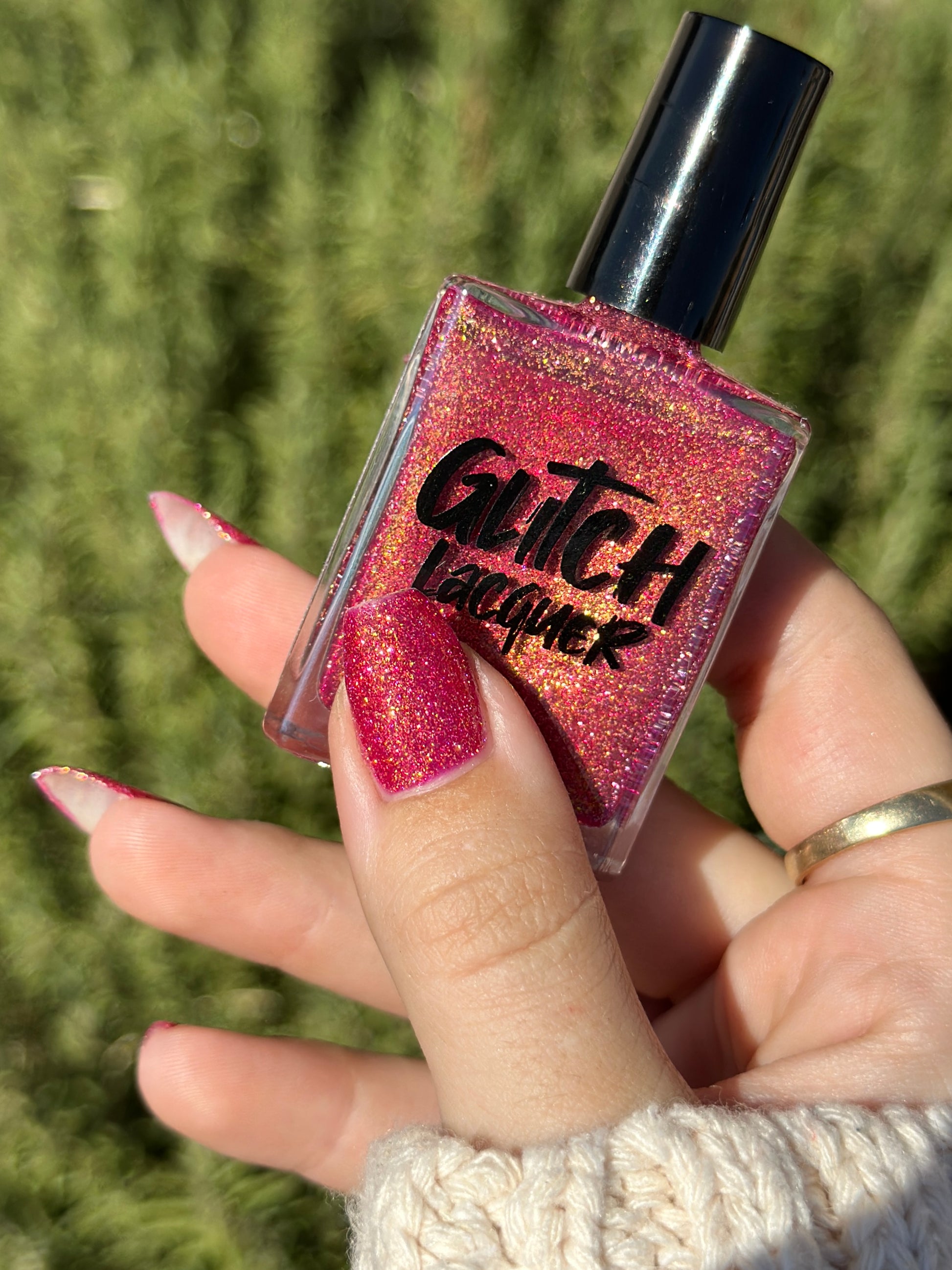 All of my polishes are mixed by hand in small batches. I do my best, but there may be some slight variation between batches, as well as a small chance of pigment specks. If you have any issues with your polish please contact me.