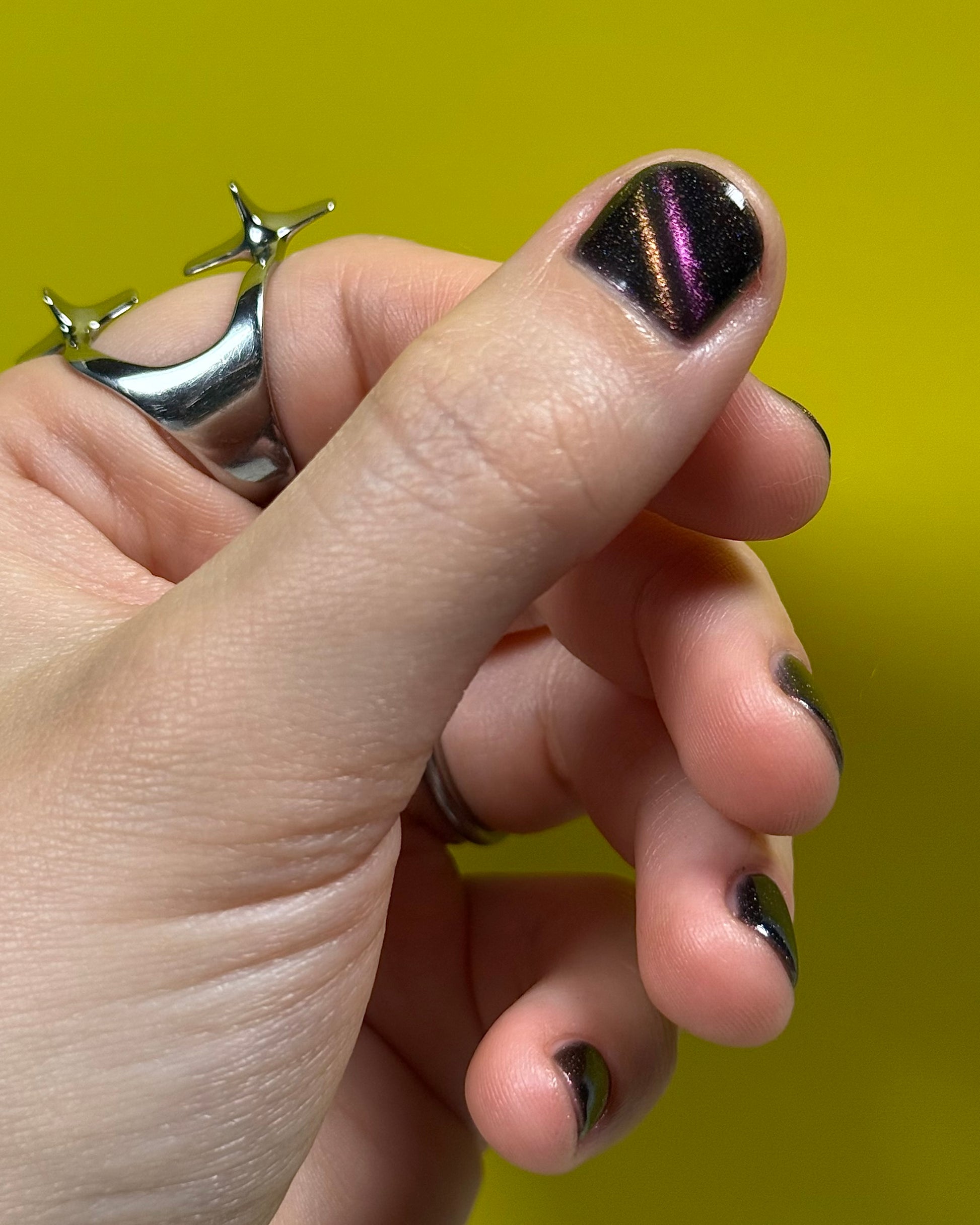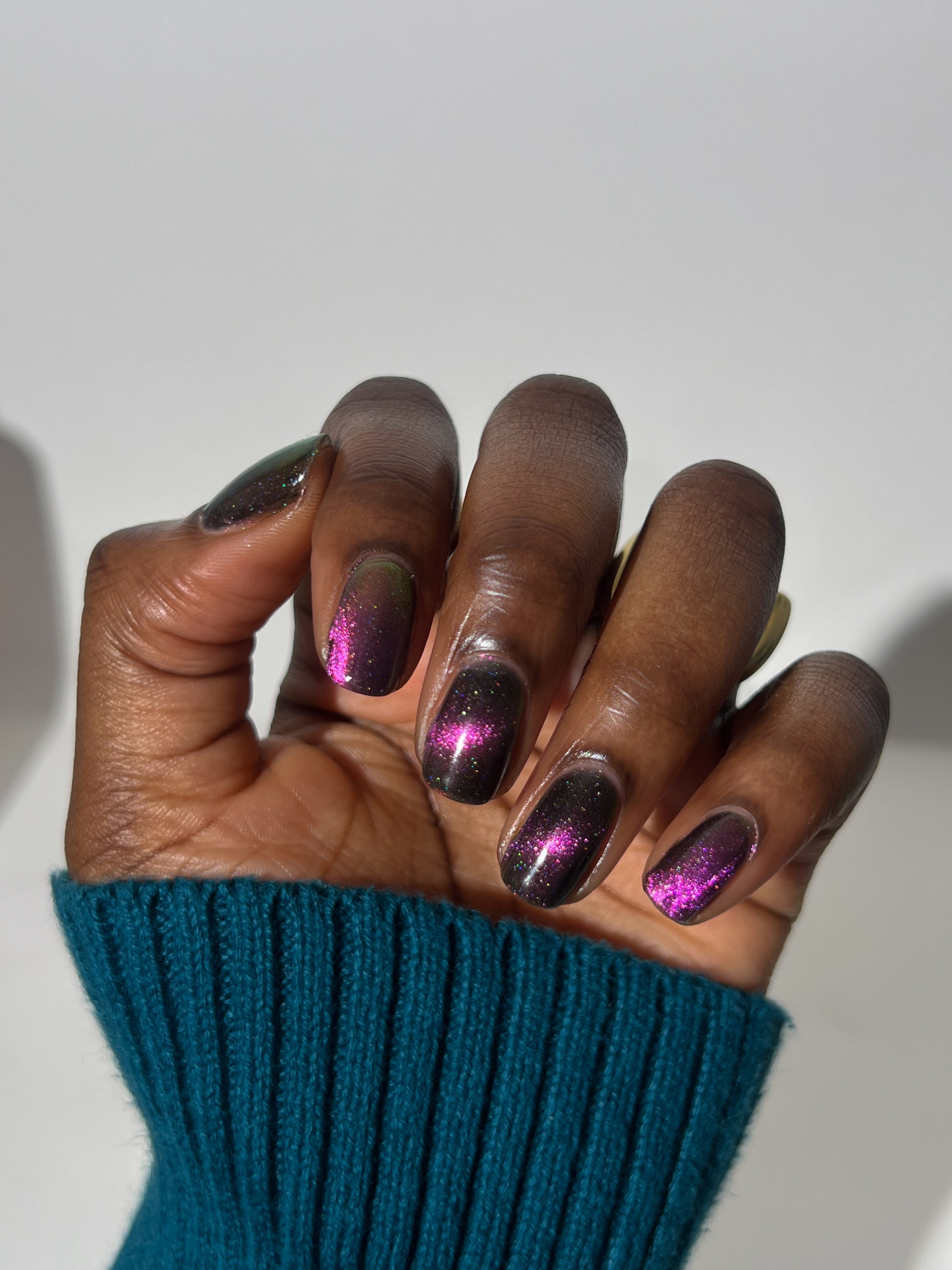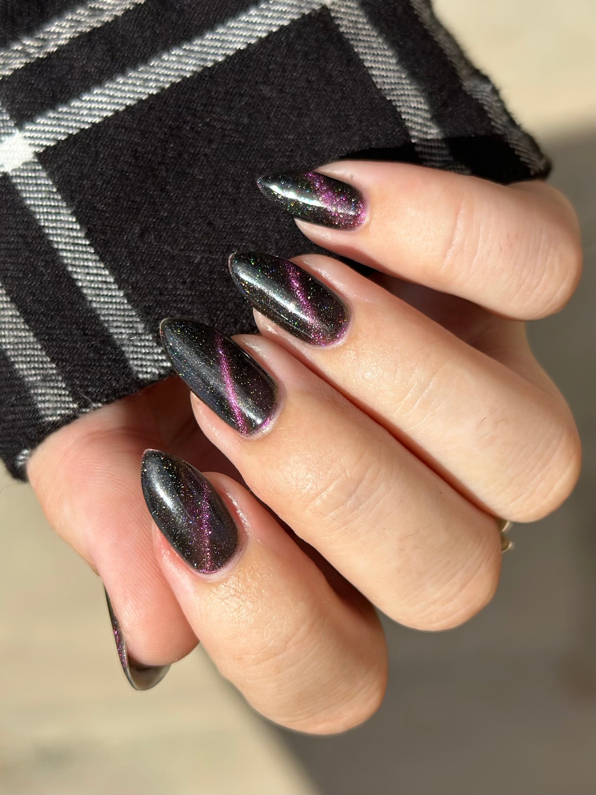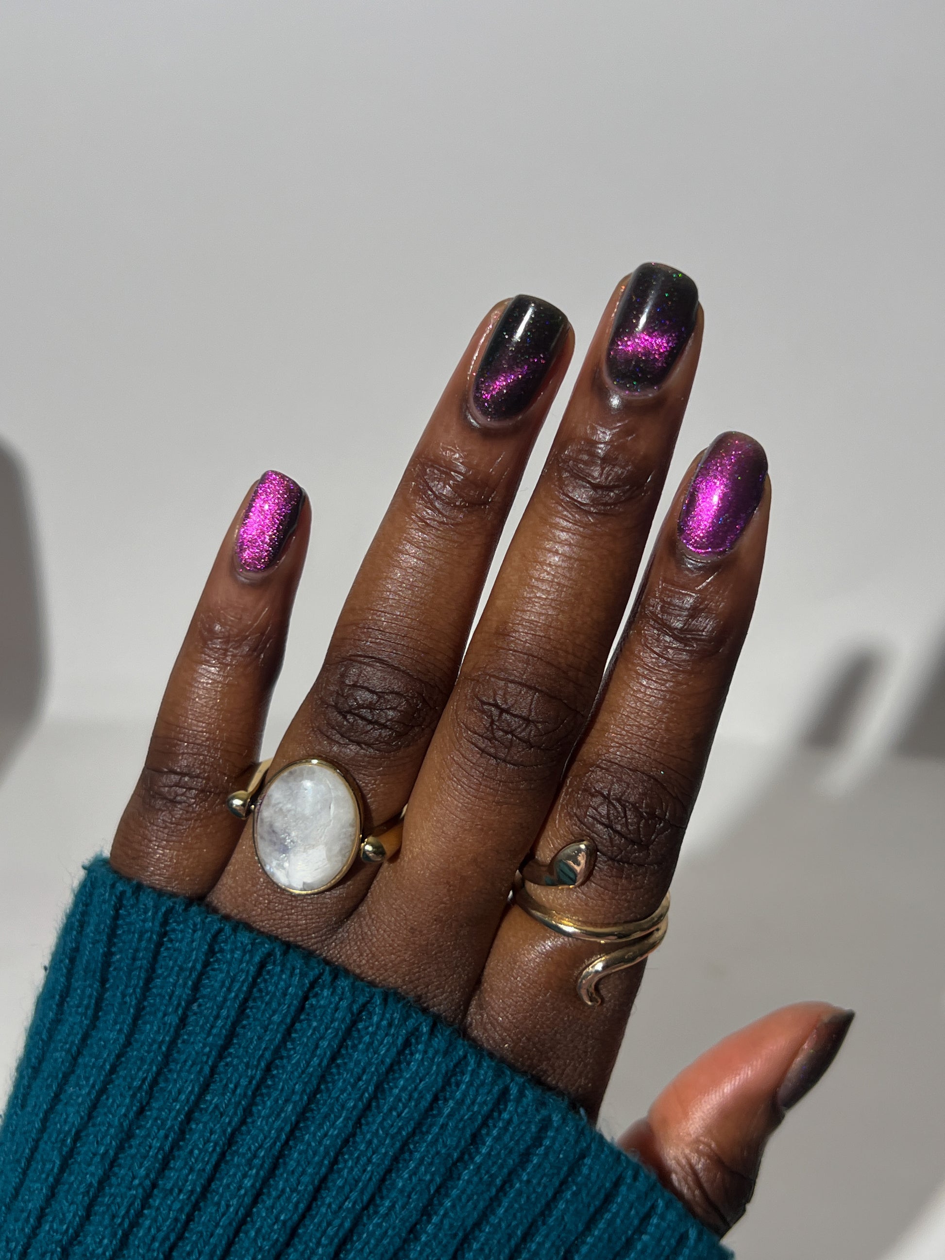 This is my most made and remade polish, trying to nail down the perfect holo base for a magical little surprise behind the magnetic pigment. It really is sorcery.