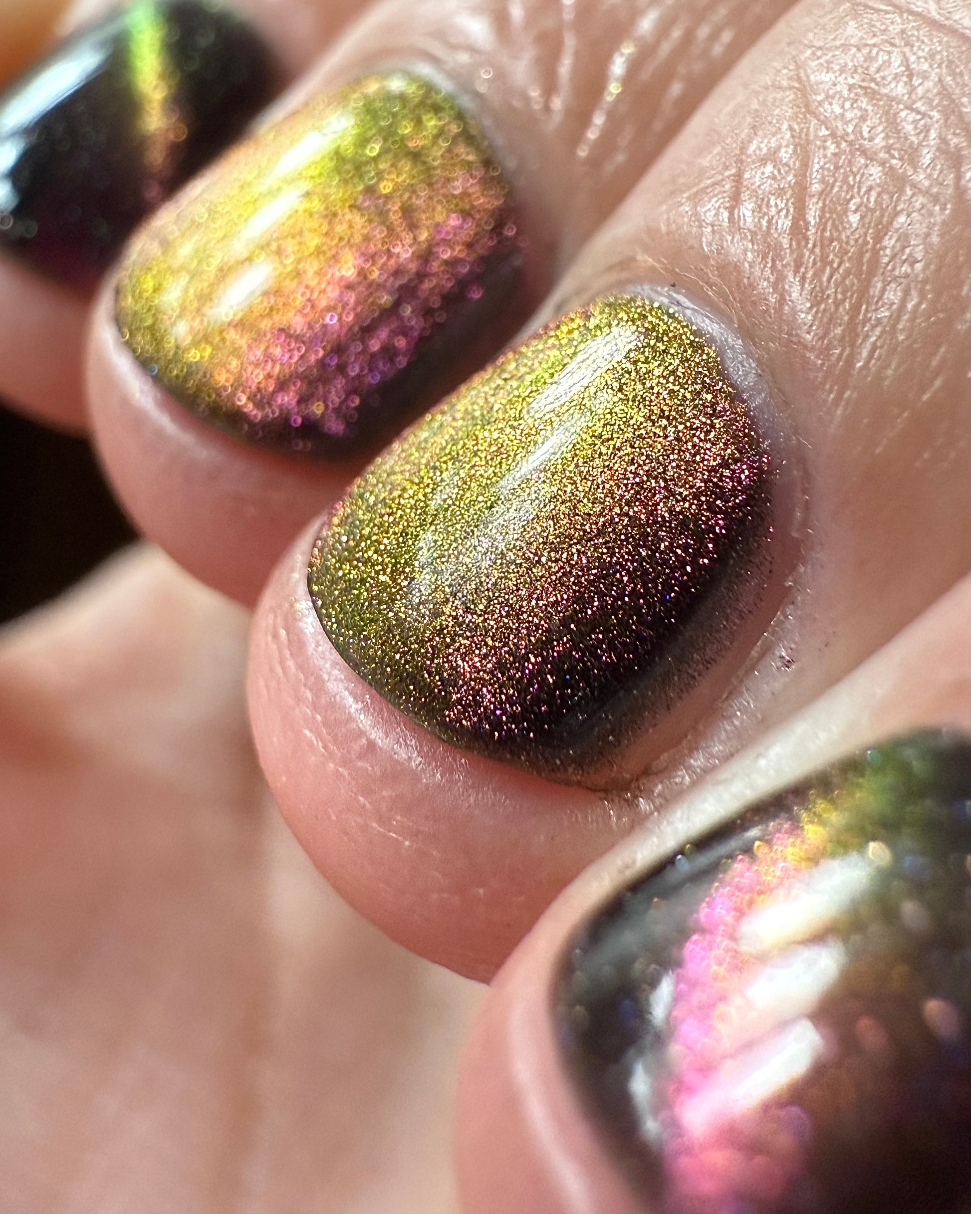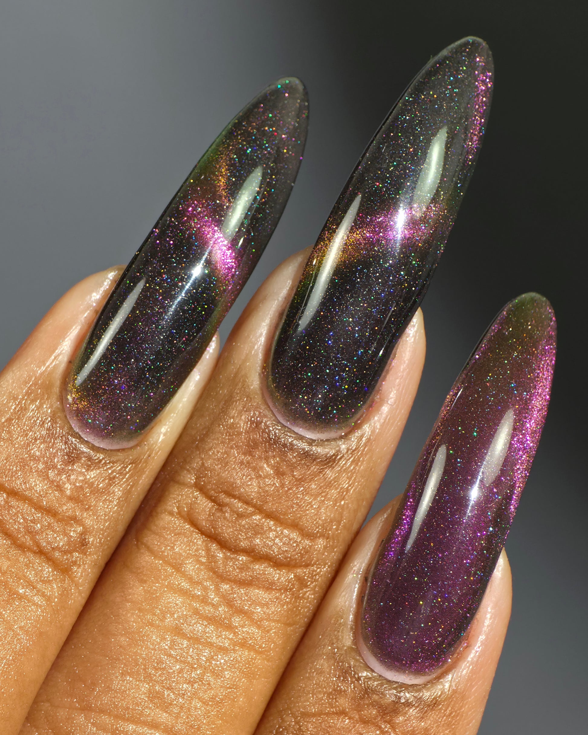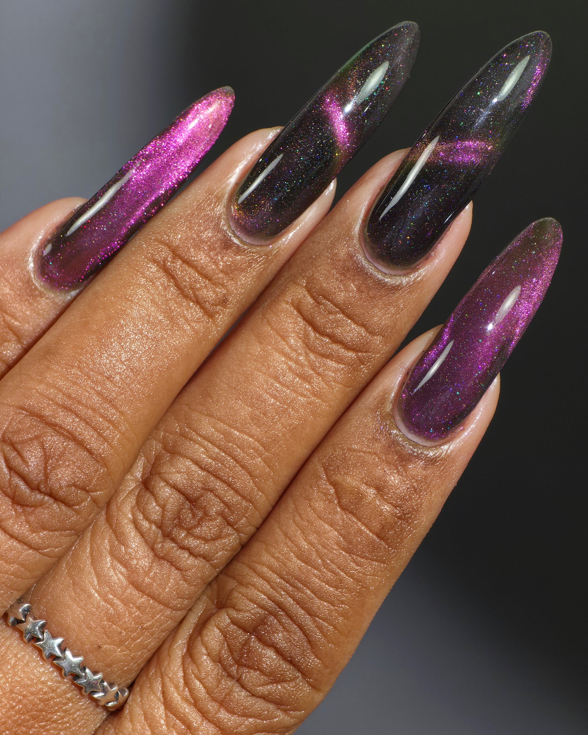 This is my most made and remade polish, trying to nail down the perfect holo base for a magical little surprise behind the magnetic pigment. It really is sorcery.
