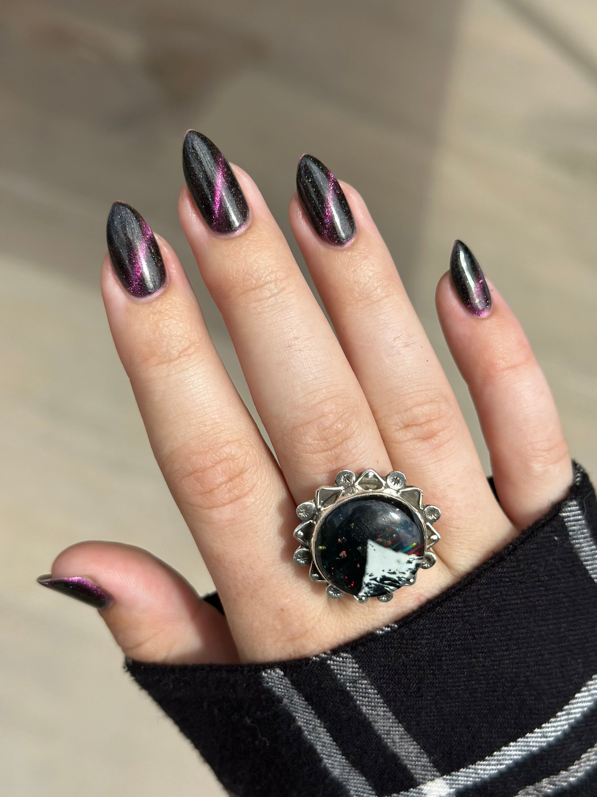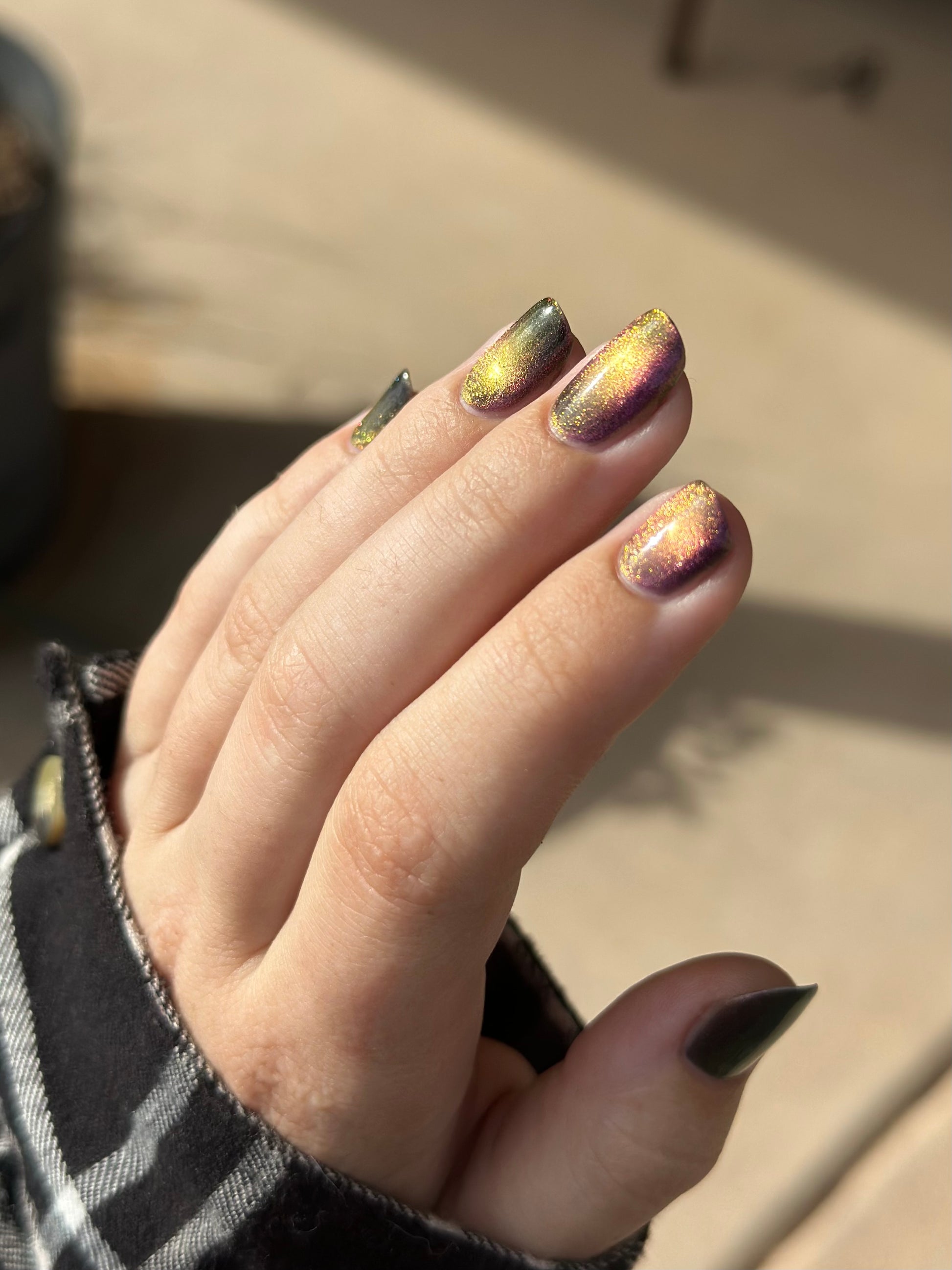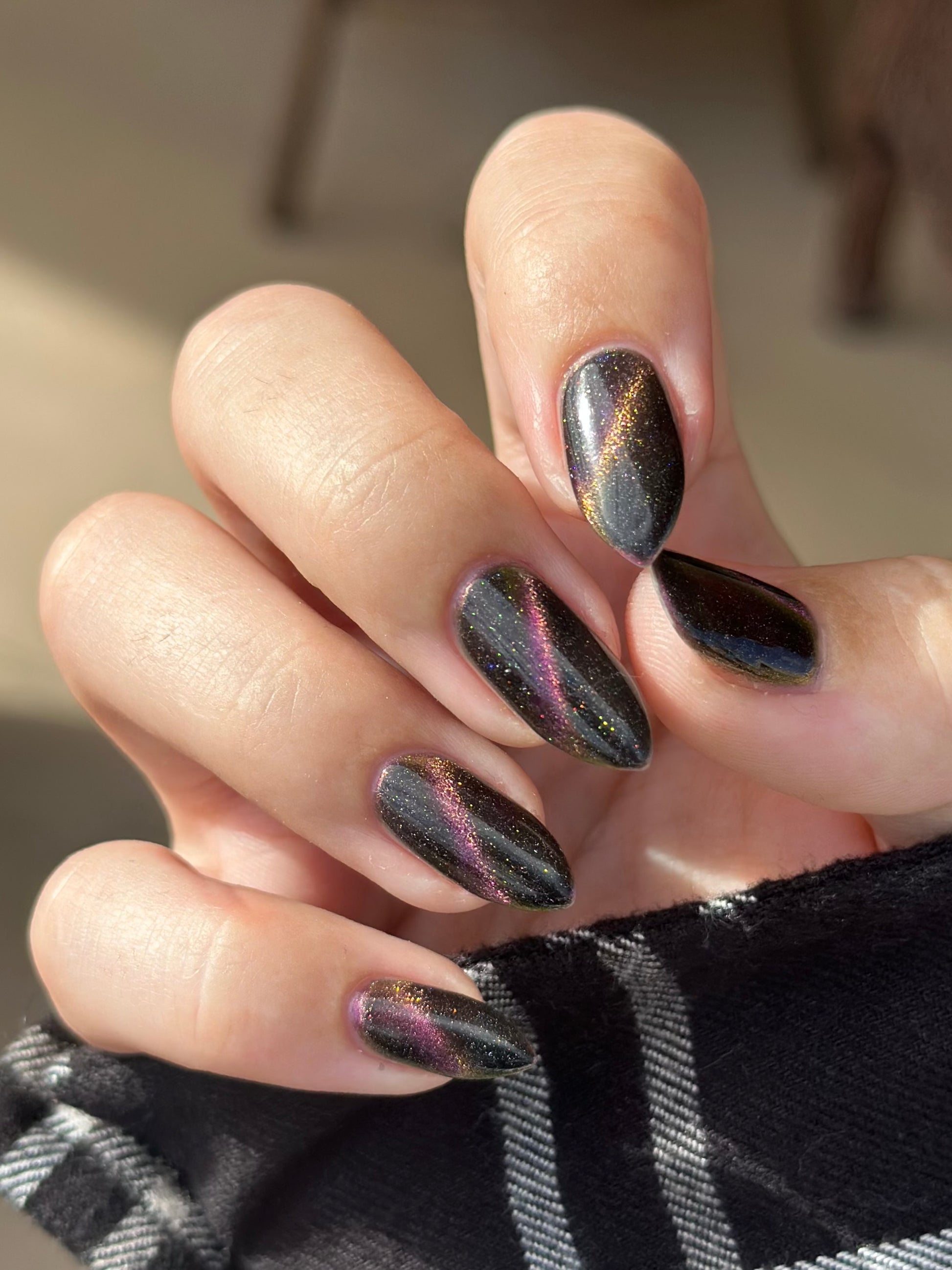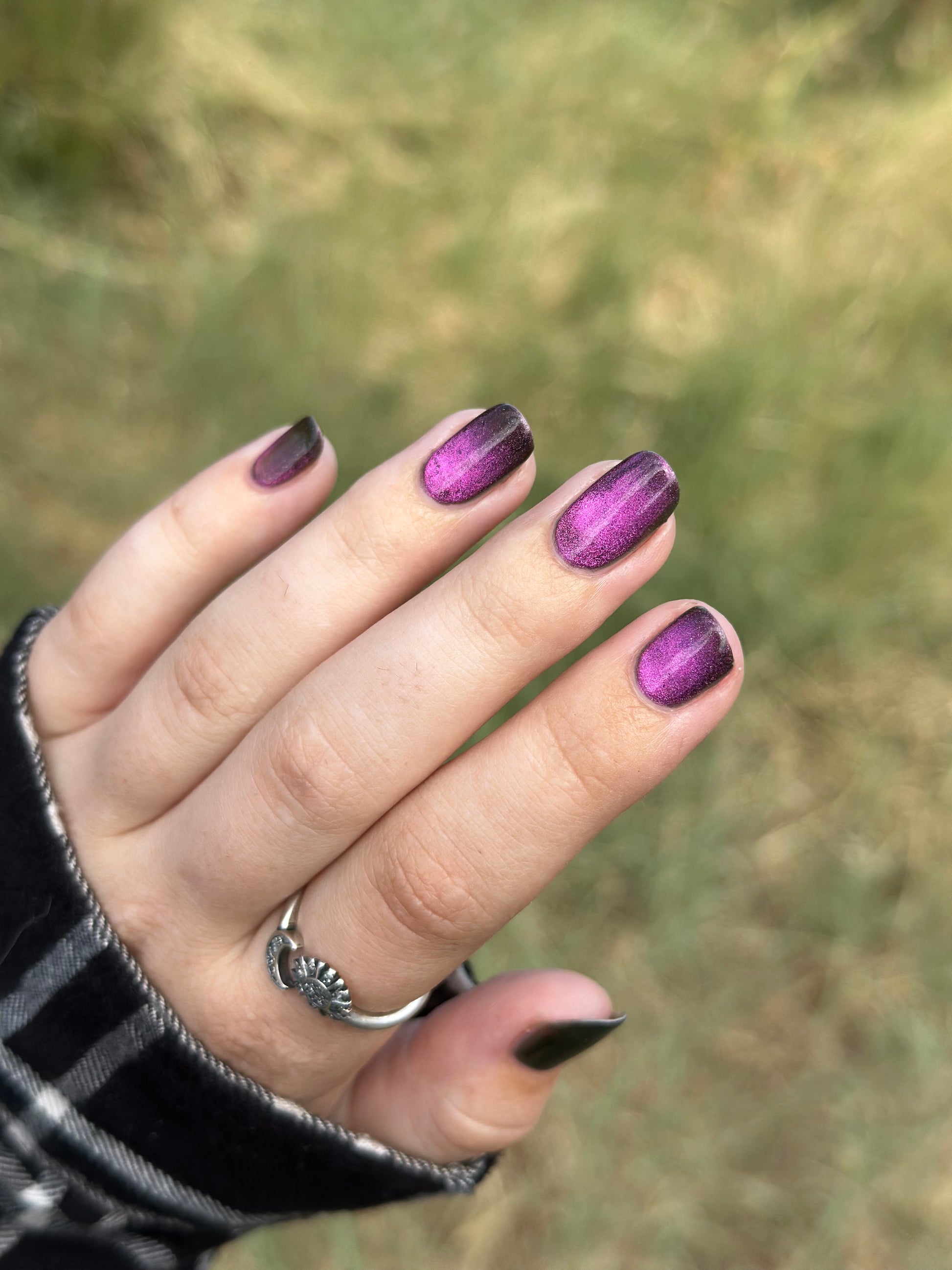This is my most made and remade polish, trying to nail down the perfect holo base for a magical little surprise behind the magnetic pigment. It really is sorcery.