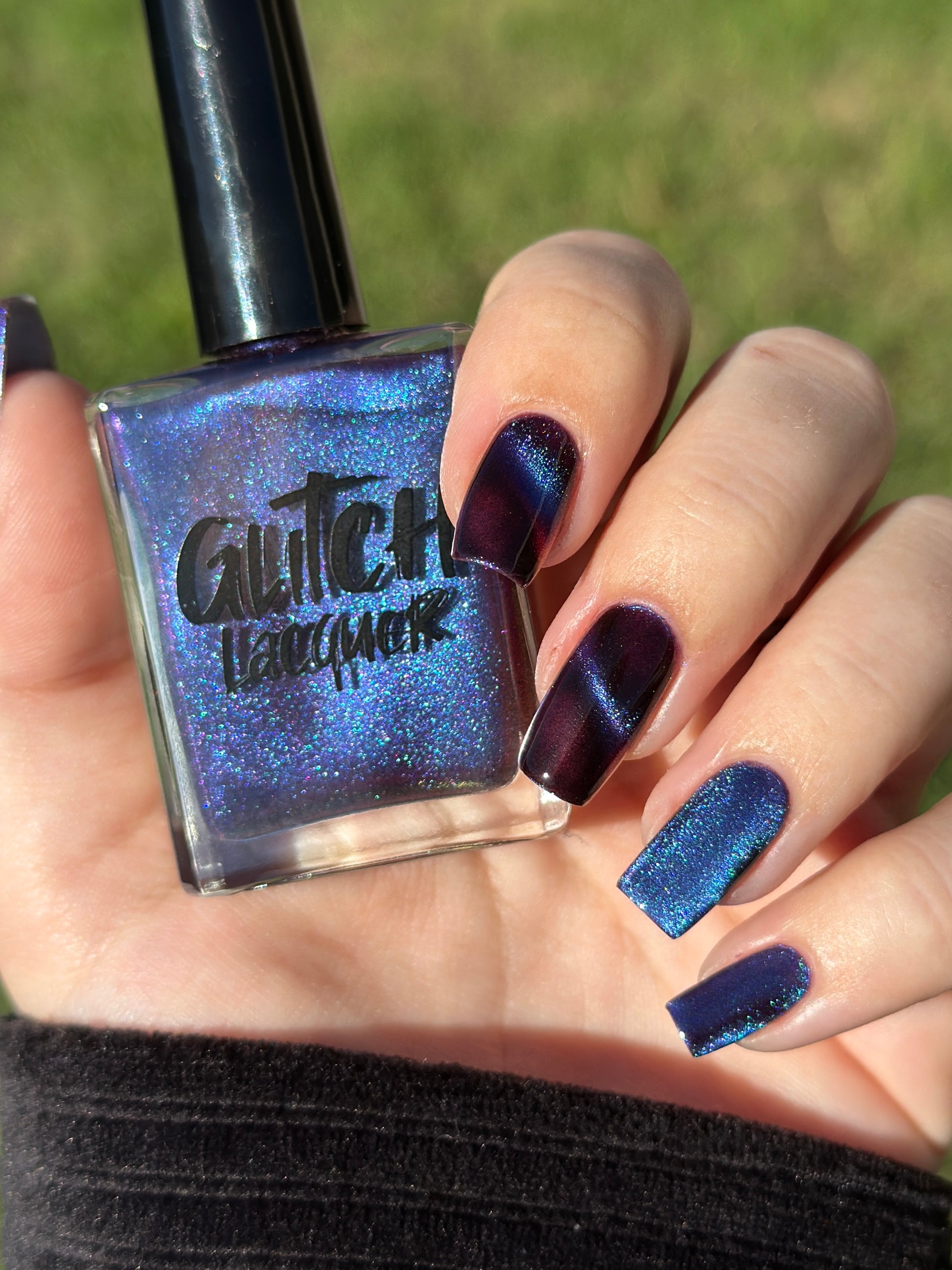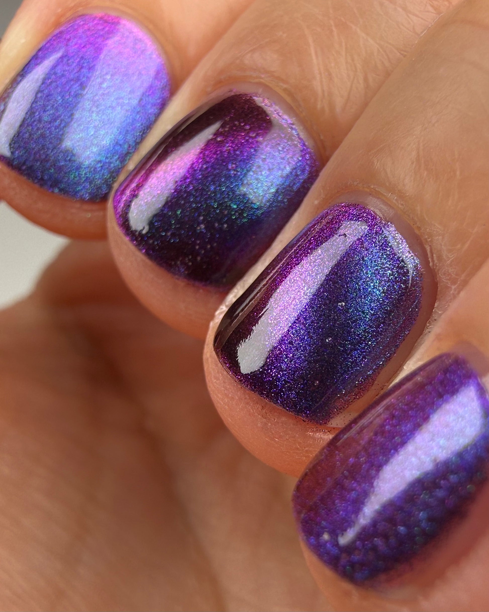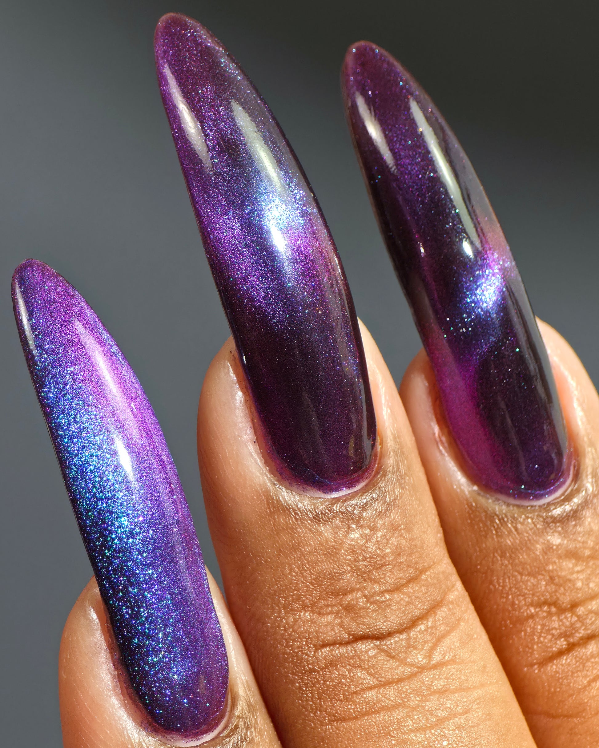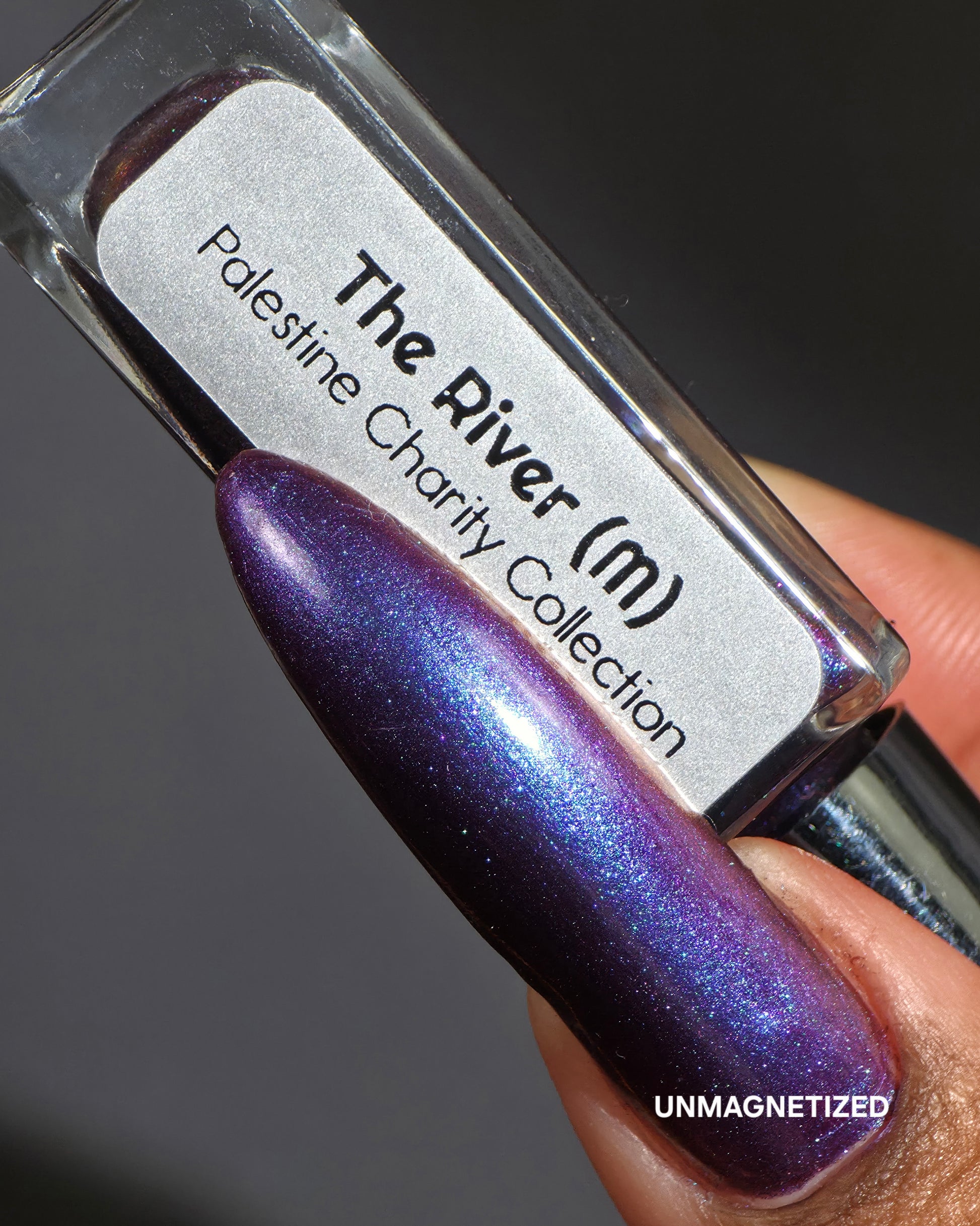 The River has a deep berry base and a magnetic pigment that shifts between blue, purple, pink, and red.