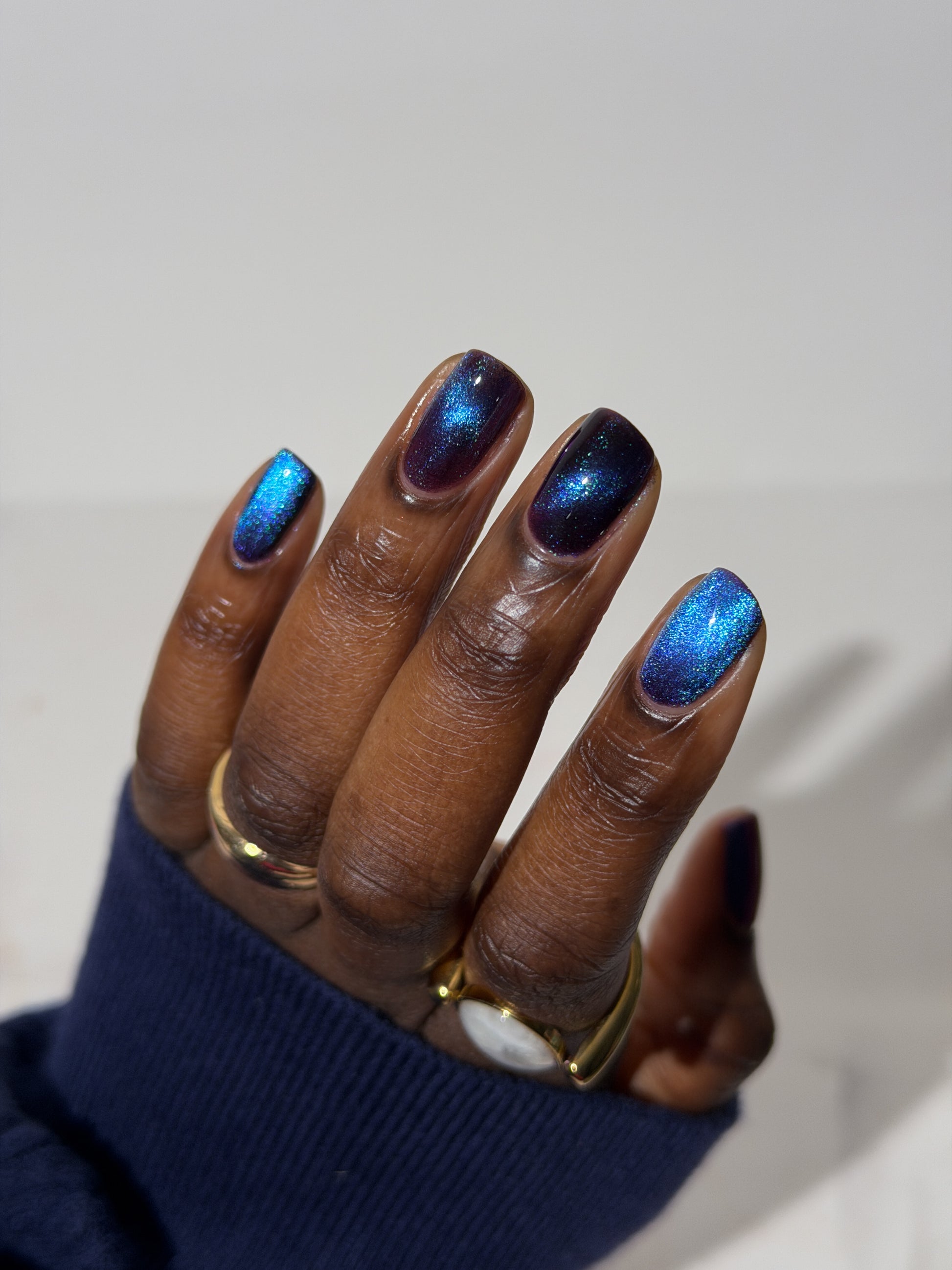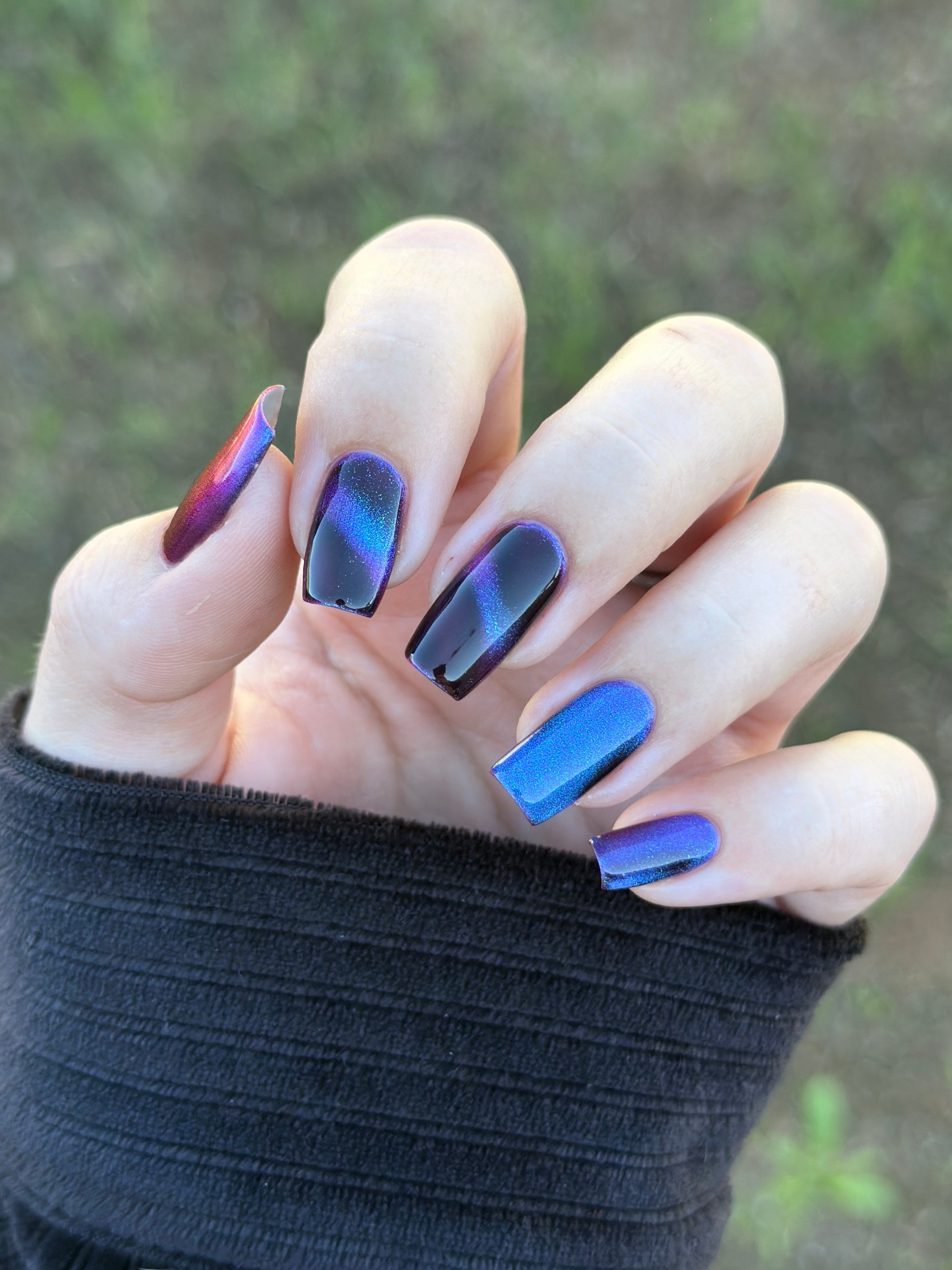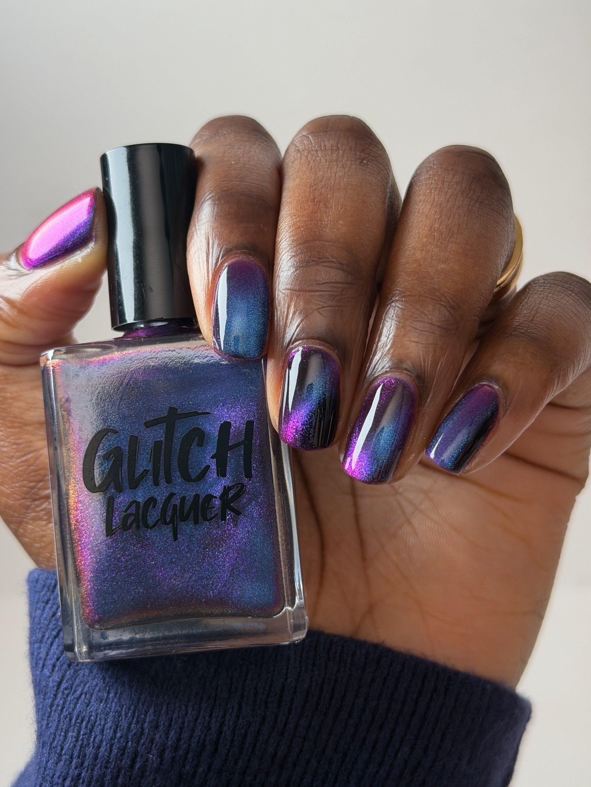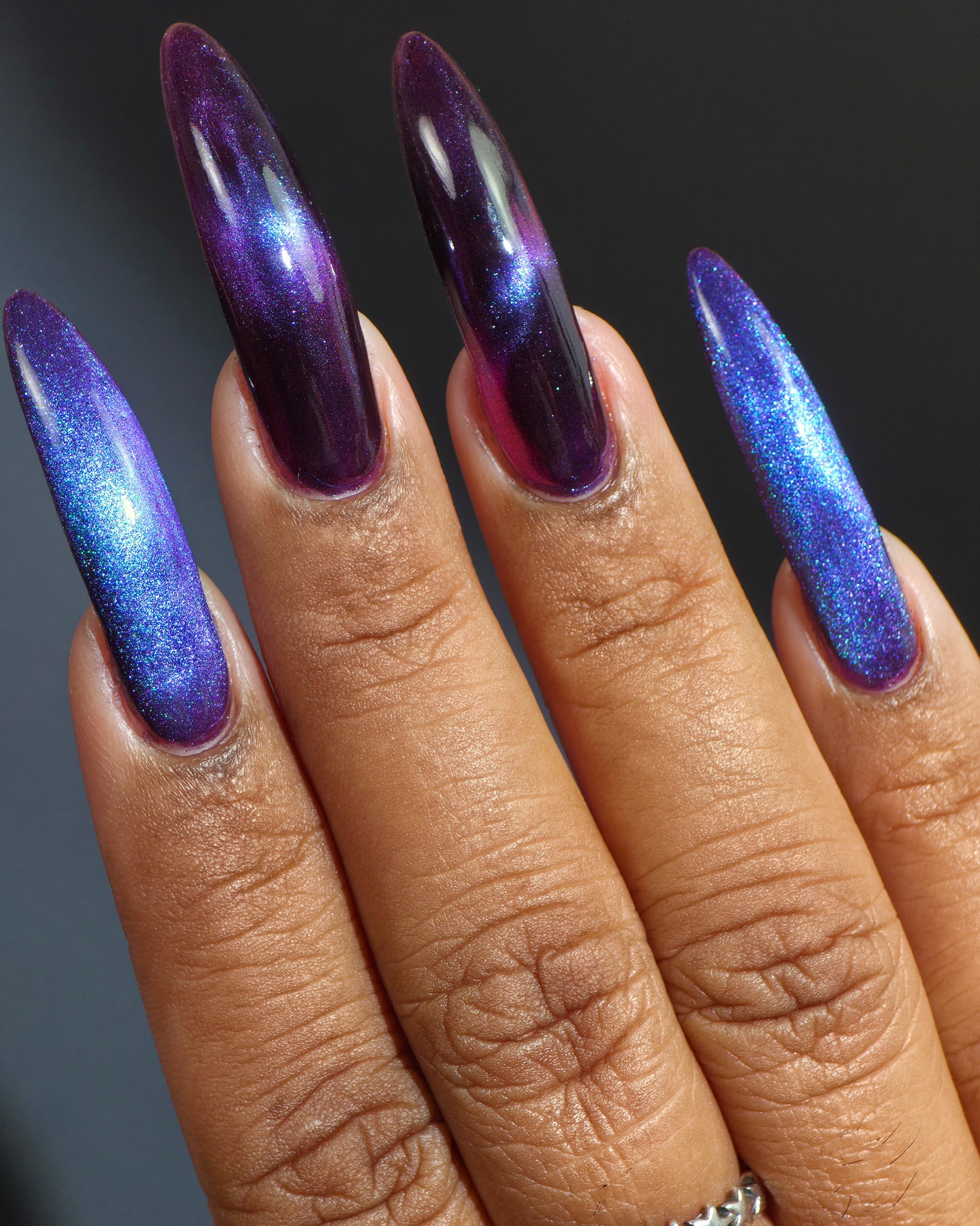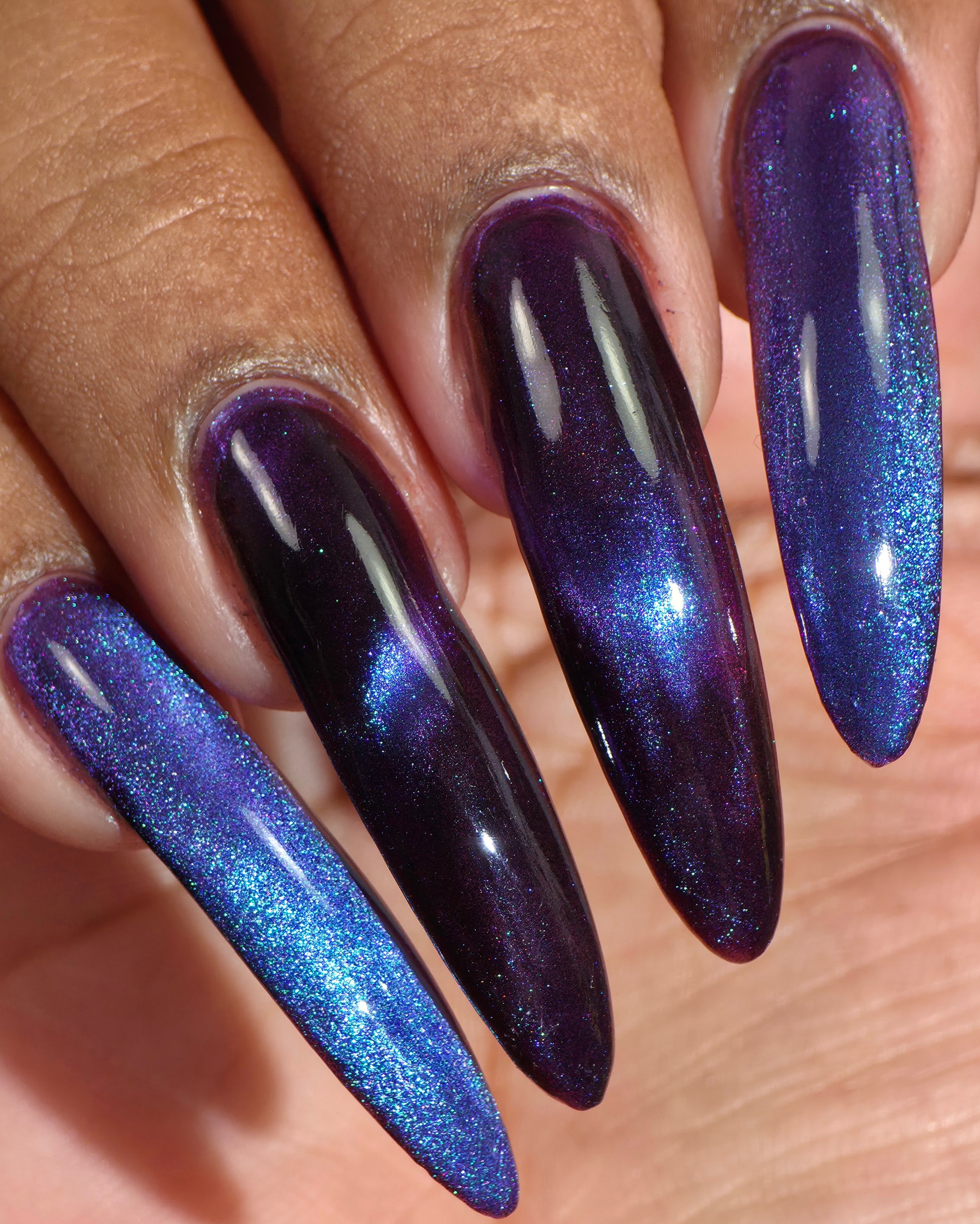 The River has a deep berry base and a magnetic pigment that shifts between blue, purple, pink, and red.