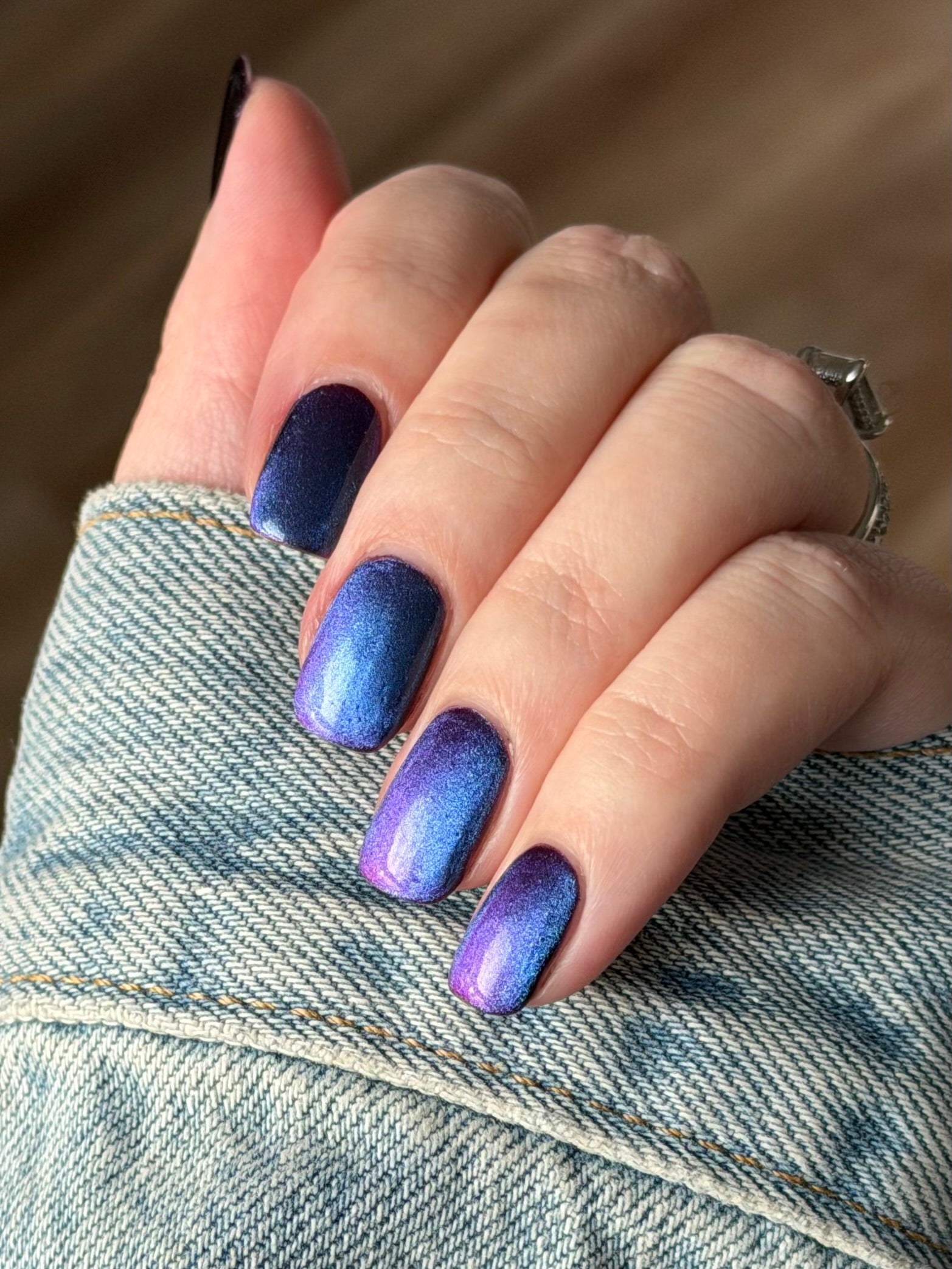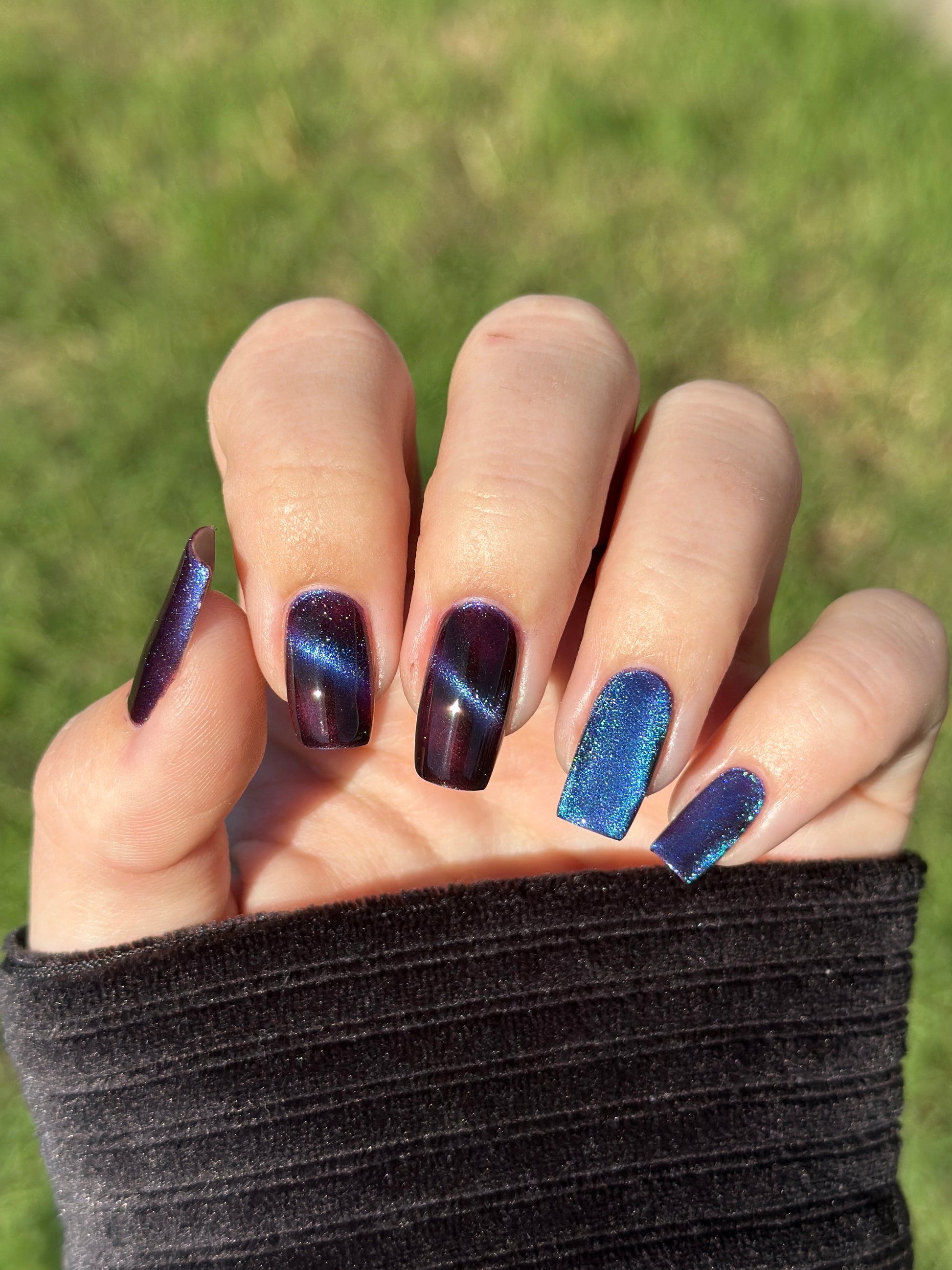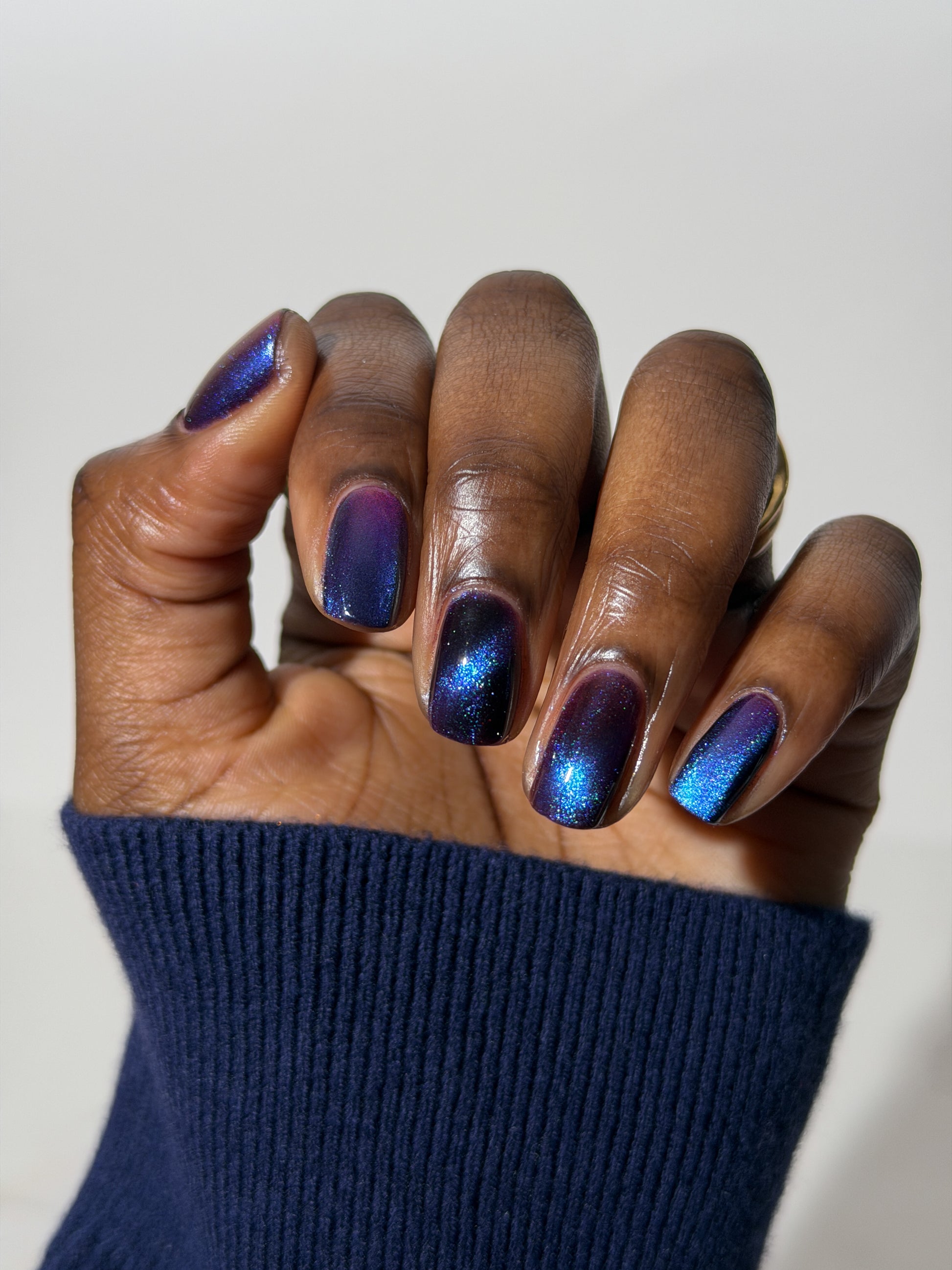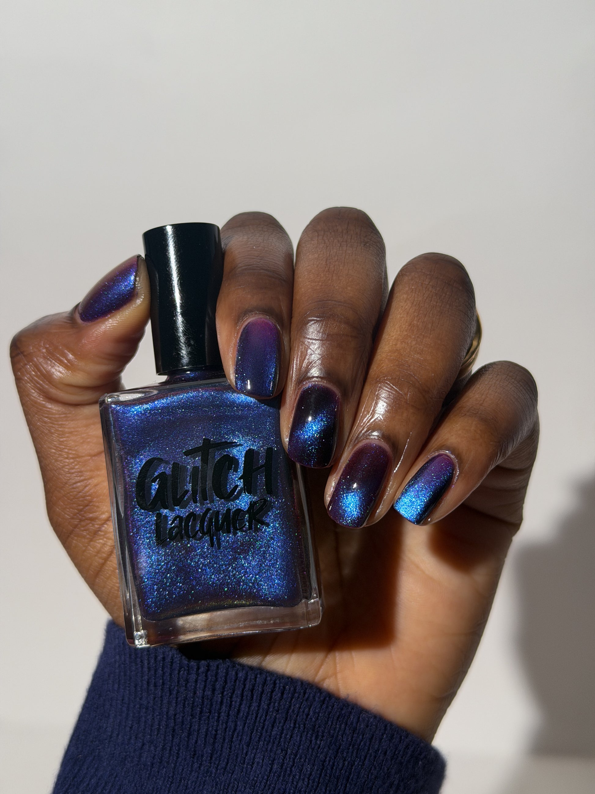 The River has a deep berry base and a magnetic pigment that shifts between blue, purple, pink, and red.