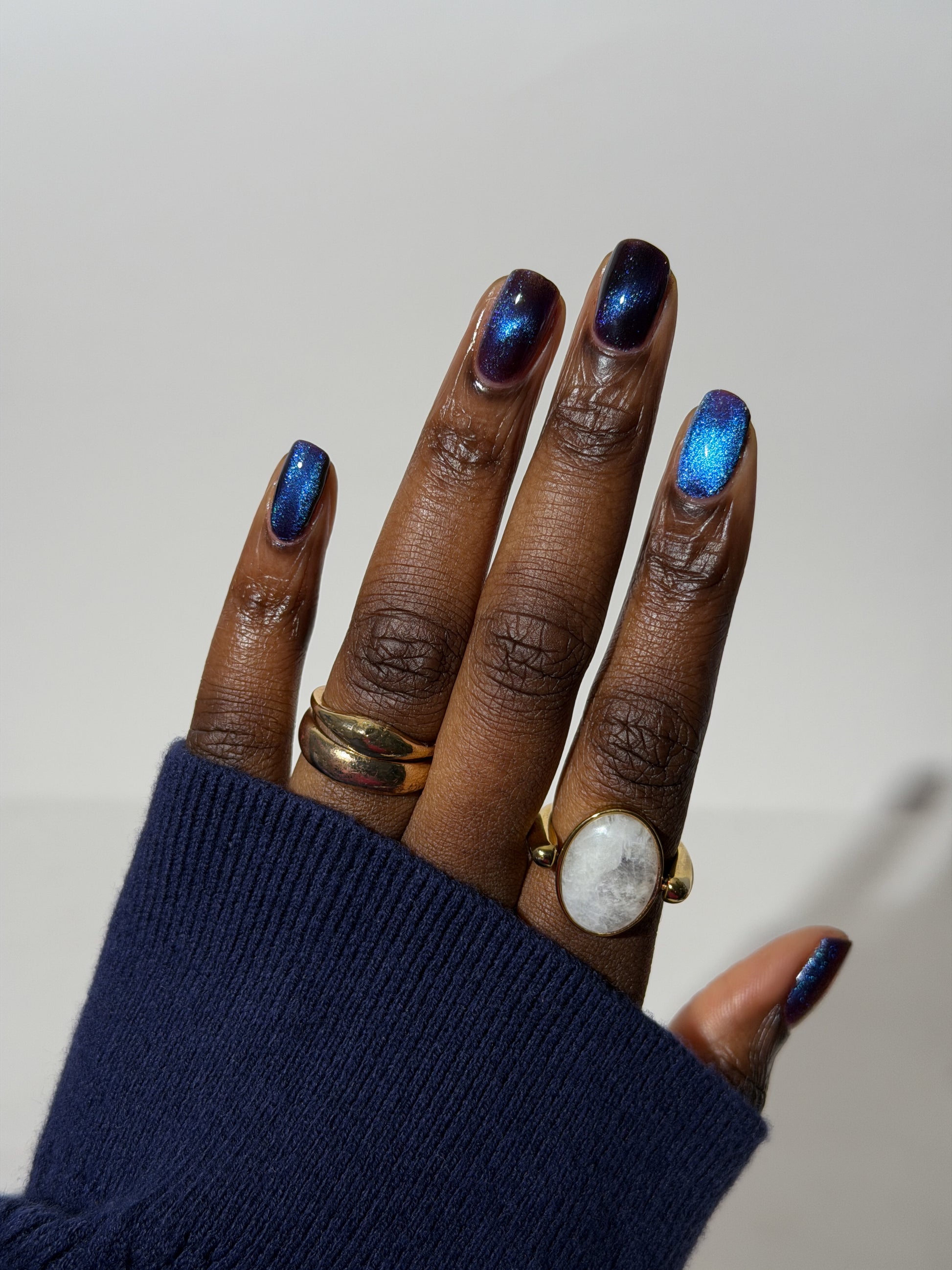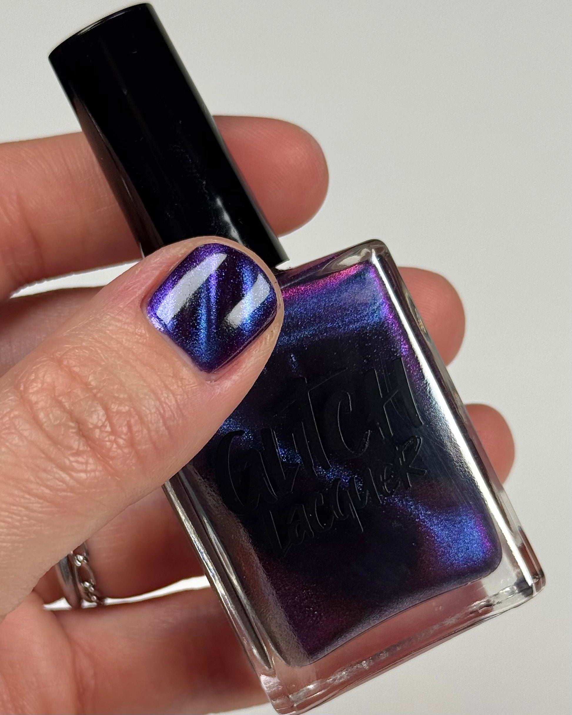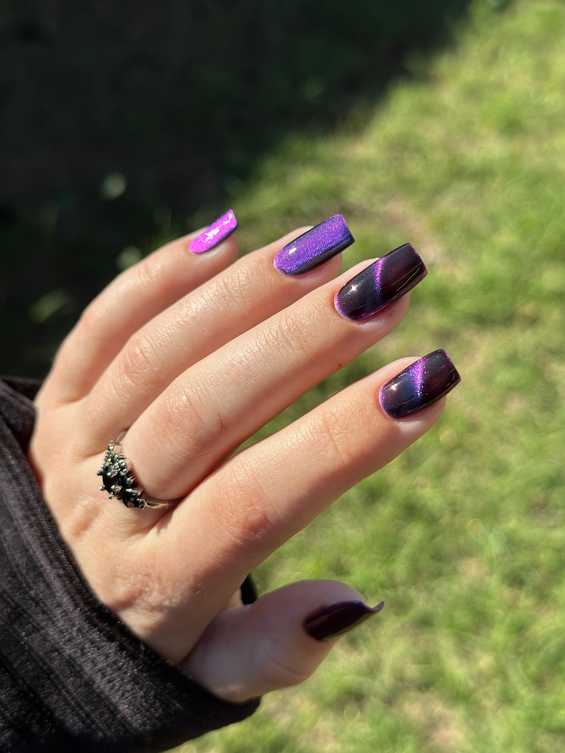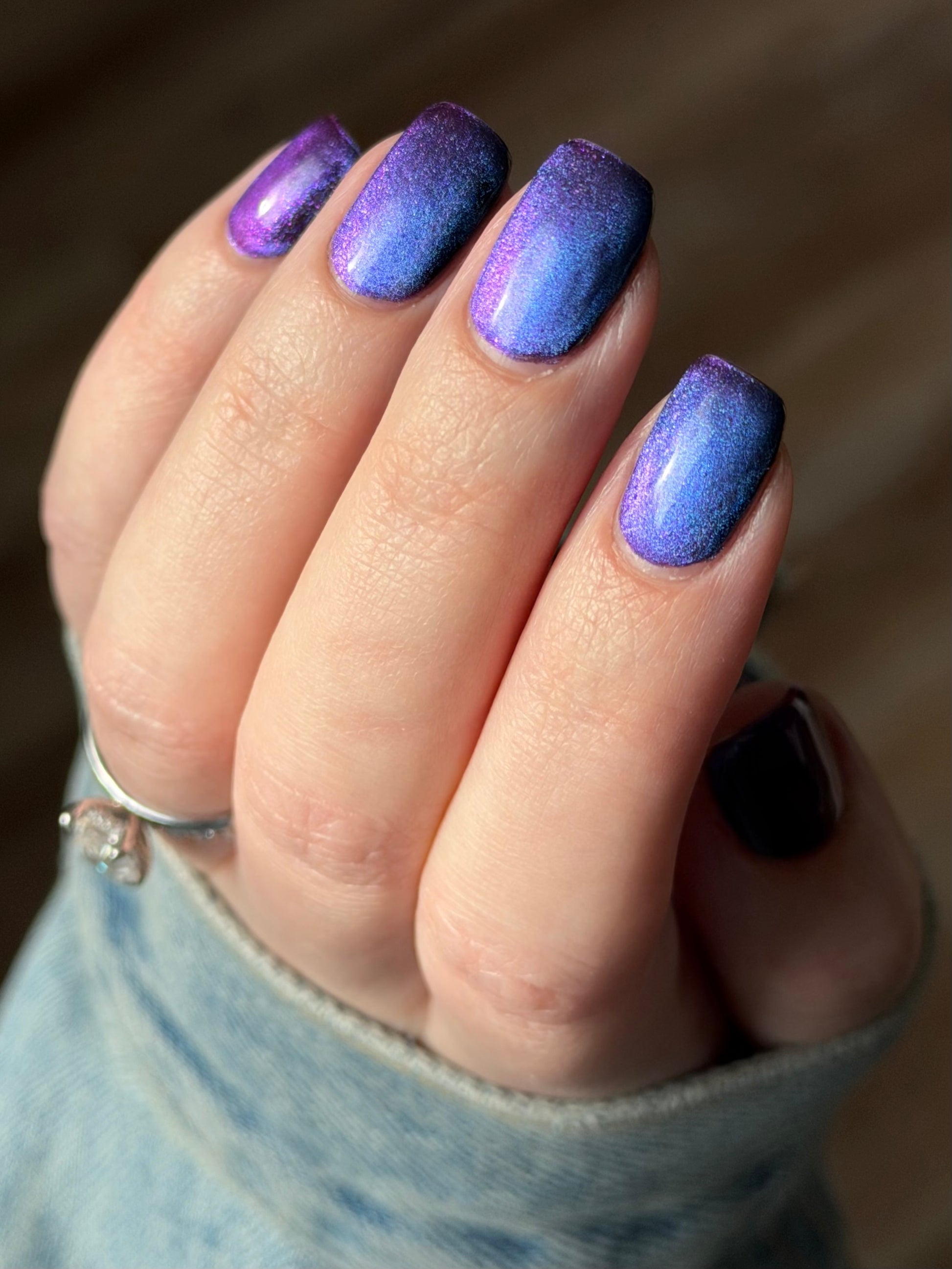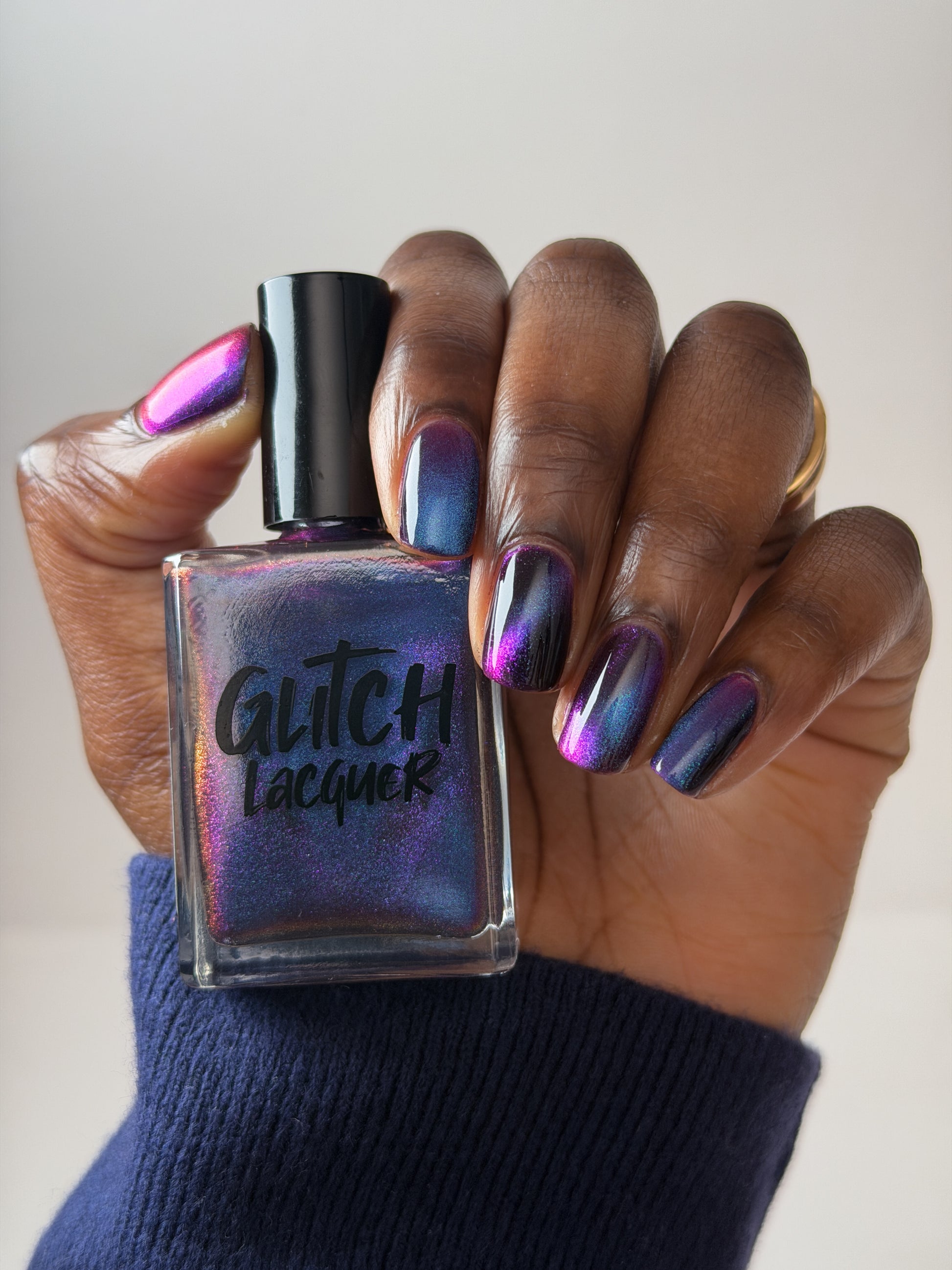 The River has a deep berry base and a magnetic pigment that shifts between blue, purple, pink, and red.