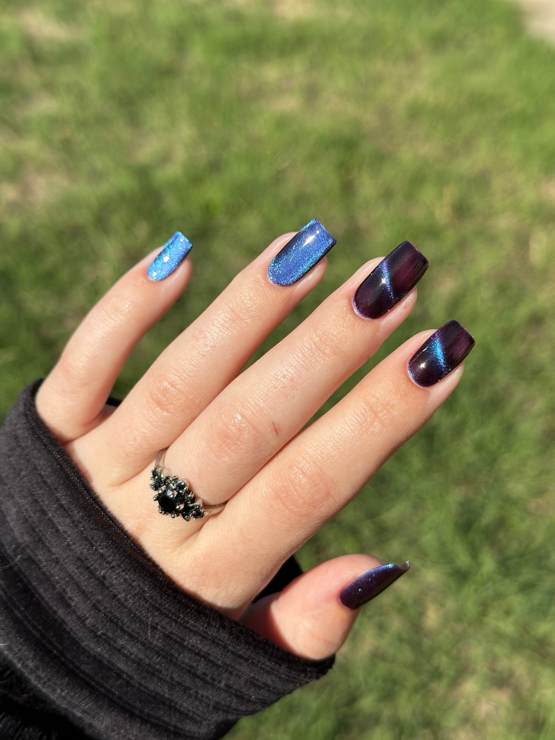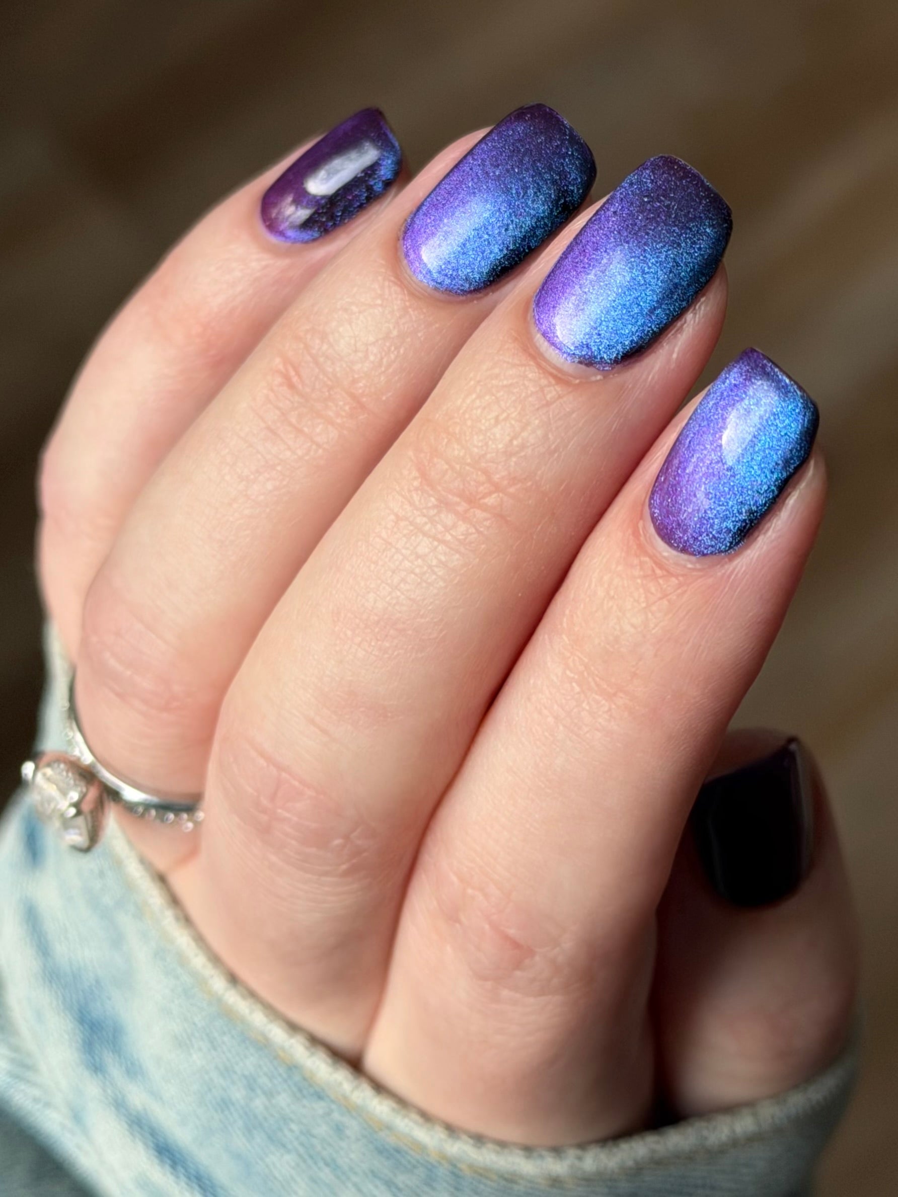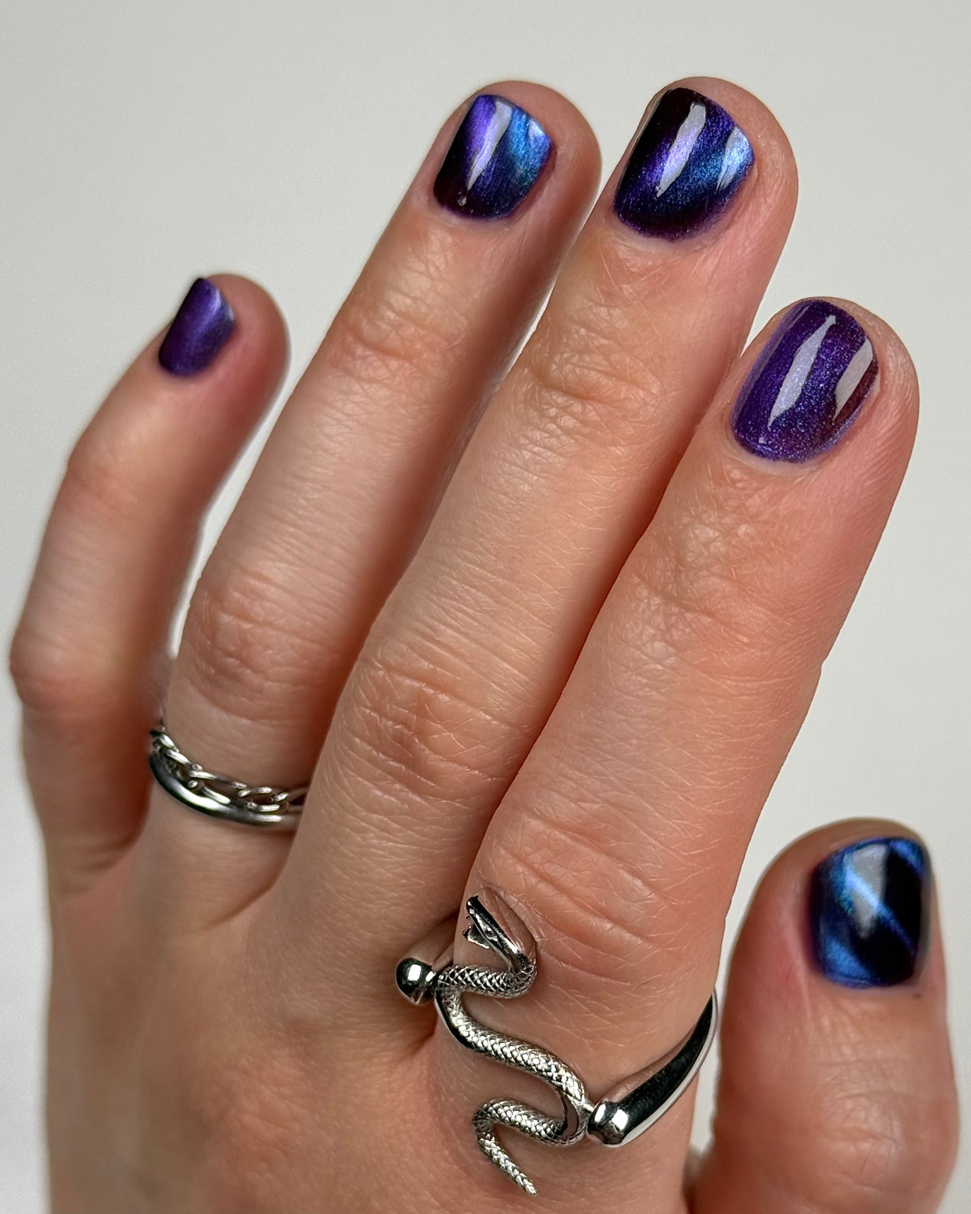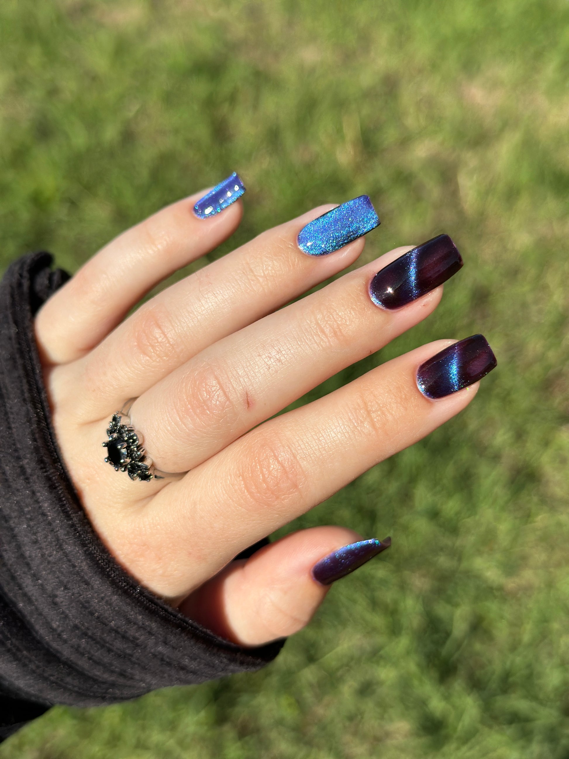 The River has a deep berry base and a magnetic pigment that shifts between blue, purple, pink, and red.